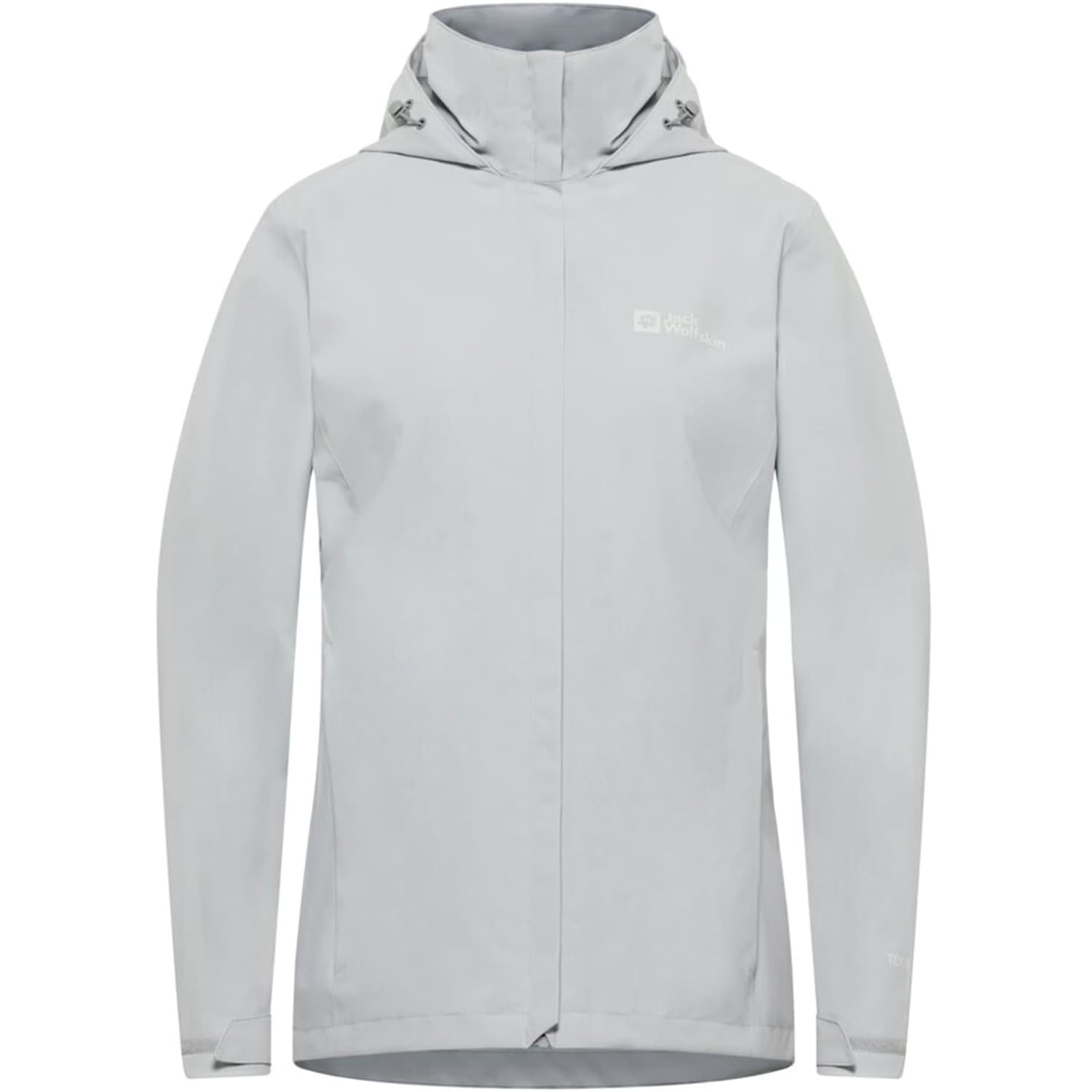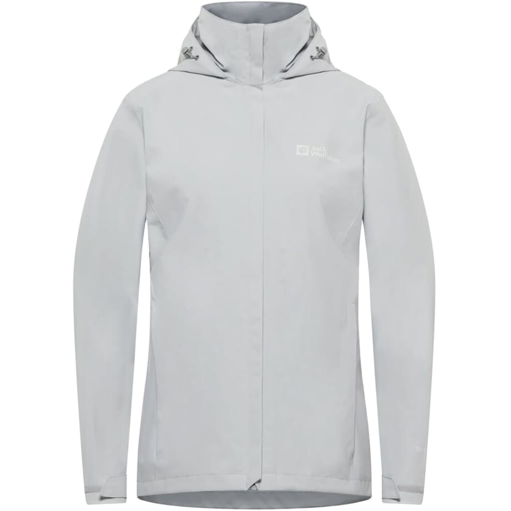 The Jack Wolfskin rain jacket is designed for walking enthusiasts. It features a hooded neck and a zipper closure, ensuring practicality and comfort. The jacket is water repellent, making it ideal for wet conditions. With a regular fit and a straight hem, it offers a solid pattern and a subtle logo embellishment, combining functionality with a sleek design. -