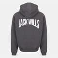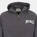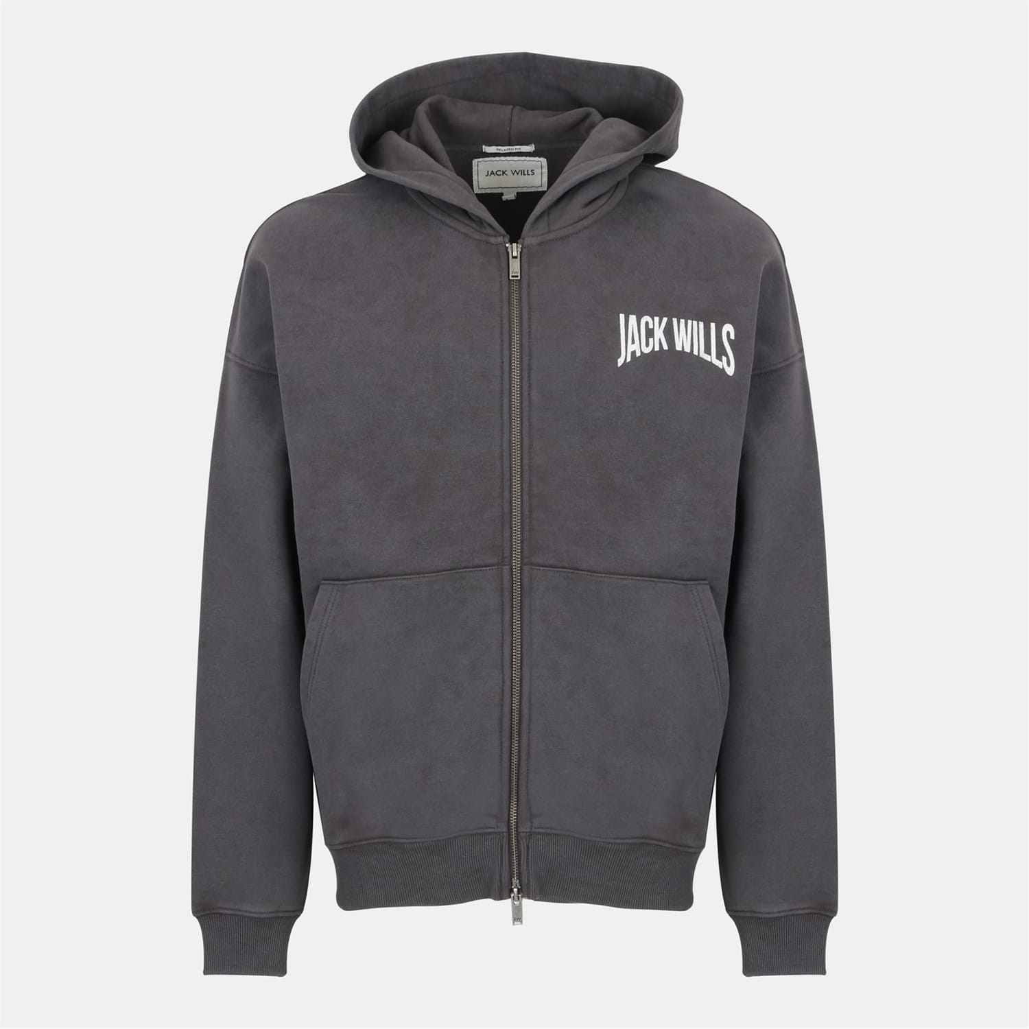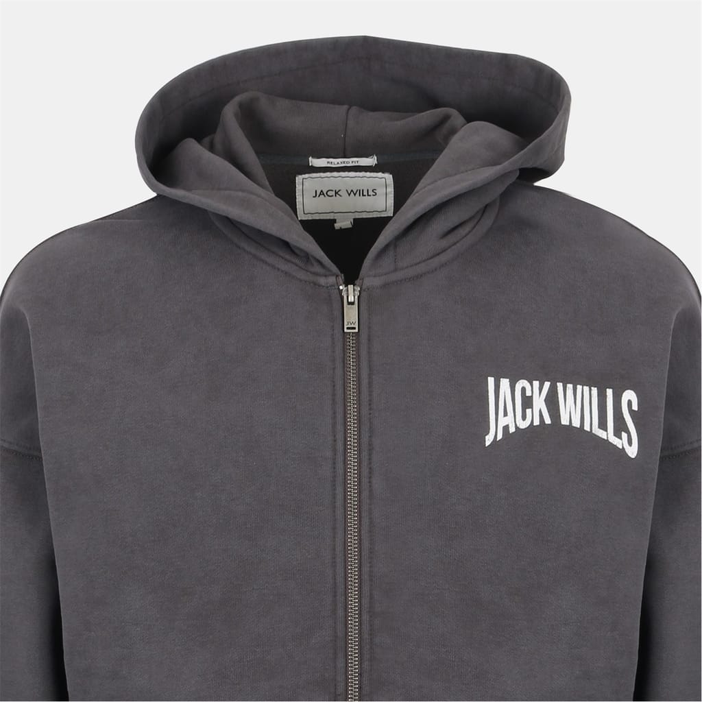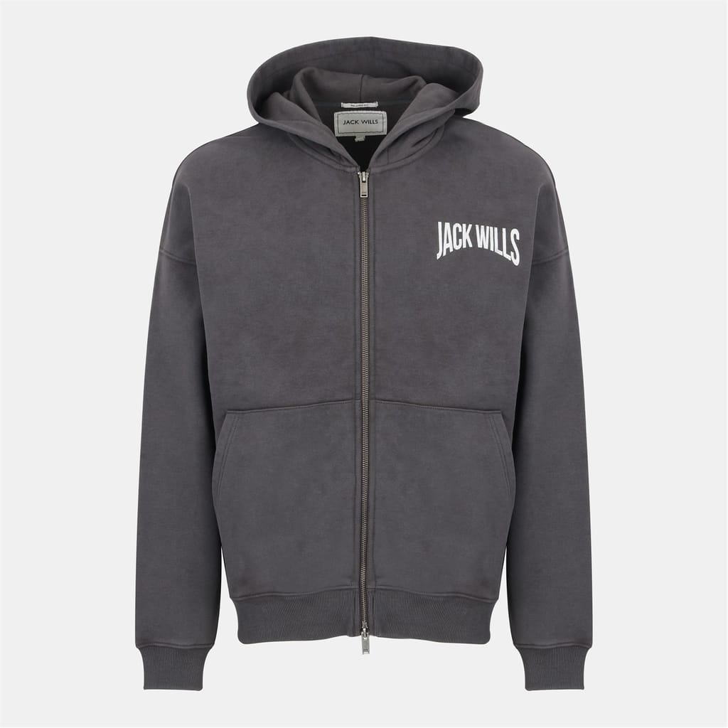 This Jack Wills sweatshirt jacket features a hooded neck and a regular fit, offering both comfort and style. The jacket is adorned with a logo print and includes a front logo embellishment. It has a zipper closure, ribbed cuffs, and a ribbed hem, ensuring a snug fit. The drop shoulder design adds a relaxed touch, while the short length makes it a versatile addition to your wardrobe. -