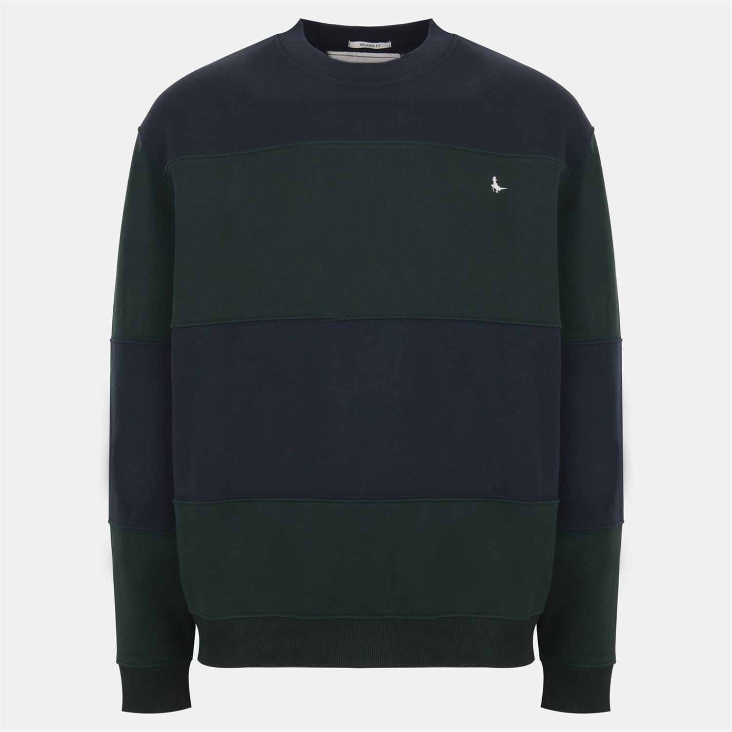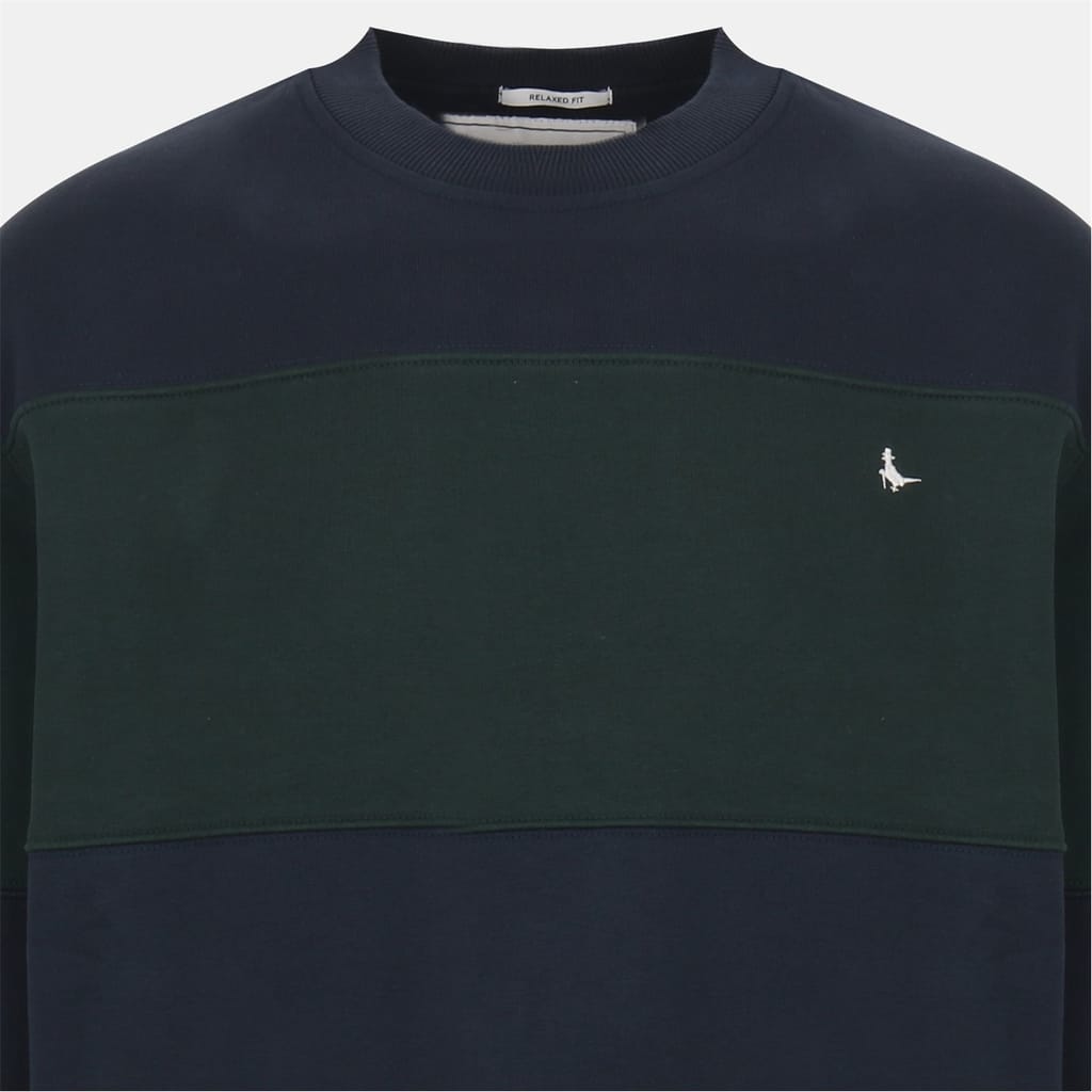 The Jack Wills Lewis top features a relaxed fit with a long sleeve design. It showcases a stylish colour block pattern, complemented by a ribbed collar and ribbed cuffs for added comfort. -