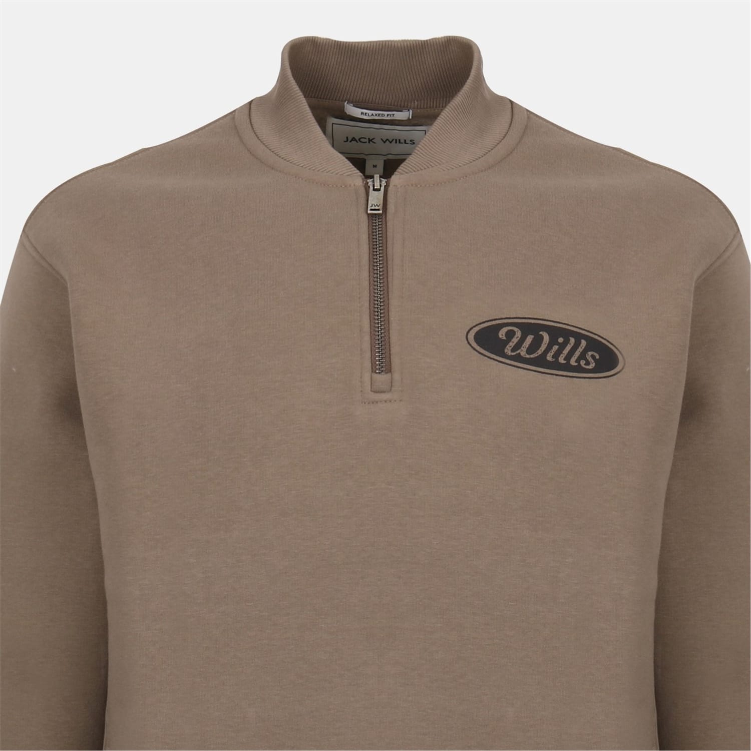 This Jack Wills top features a quarter zipper closure and a zip neck design, offering a stylish yet functional look. The long sleeves are complemented by ribbed cuffs and a ribbed collar, ensuring a comfortable fit. The solid pattern is enhanced by a subtle logo embellishment, making it a versatile addition to any wardrobe. -