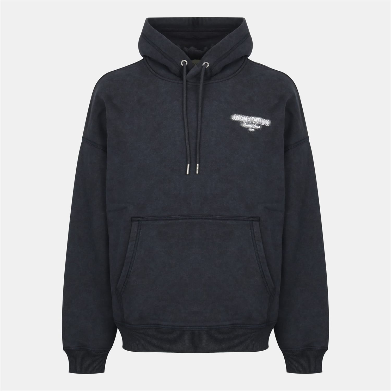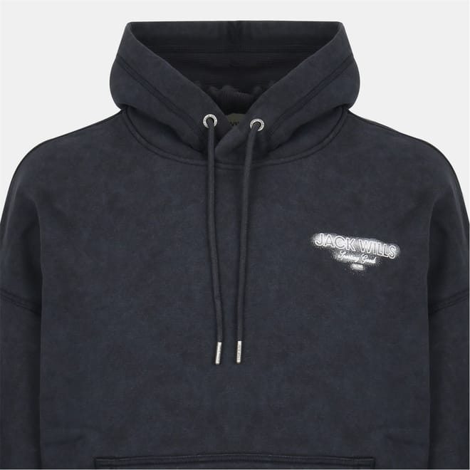 This Jack Wills top features a hooded neck and long sleeves with a drop shoulder design. The regular fit is complemented by ribbed cuffs, while the marble pattern adds a unique touch. Embellished with a front logo and a practical kangaroo pocket, this top is both stylish and functional. -