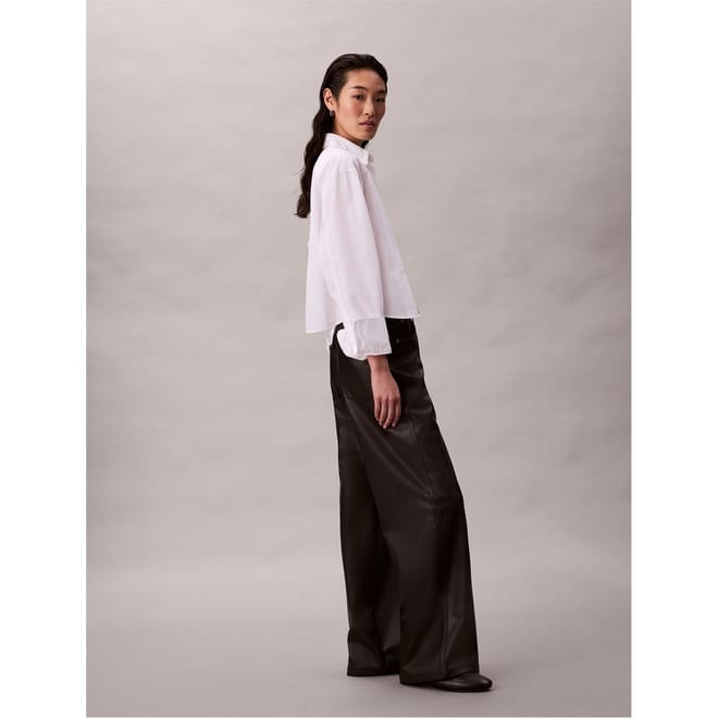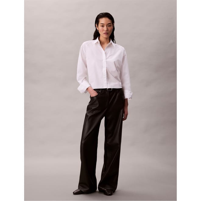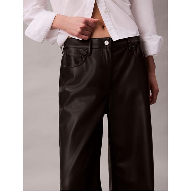 Calvin Klein Jeans presents these wide-leg trousers, featuring a five-pocket design with a zip fly, front button, and belt loops. The wide fit ensures comfort, while the pockets, including coin, front, and back pockets, add practicality. These trousers are a versatile addition to any wardrobe, combining style and functionality effortlessly. -