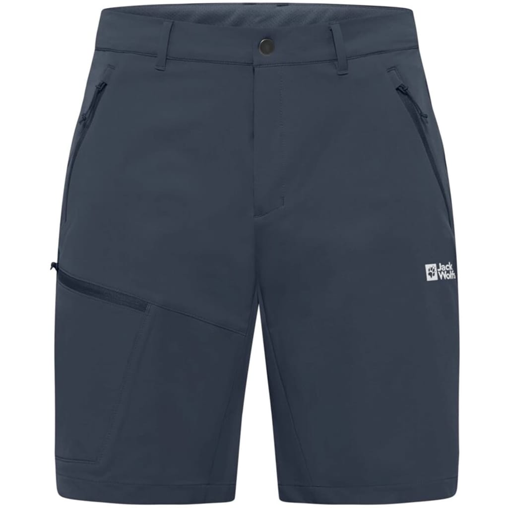 Discover the Jack Wolfskin trail shorts, perfect for casual and walking collections. These solid bermuda shorts feature a button and zip fly closure, offering practicality with multiple pockets including zipped and side pockets. The logo embellishment adds a subtle touch of brand identity, making them ideal for both athletic and casual settings. -