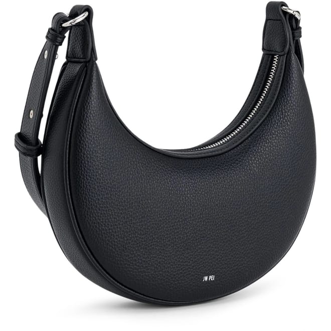 Discover the JW Pei cross body bag, a stylish accessory for your collection. This hobo bag features a secure zipper closure and a convenient shoulder handle for easy carrying. The design is enhanced with a logo and a practical zipped pocket, offering both functionality and a touch of elegance. -