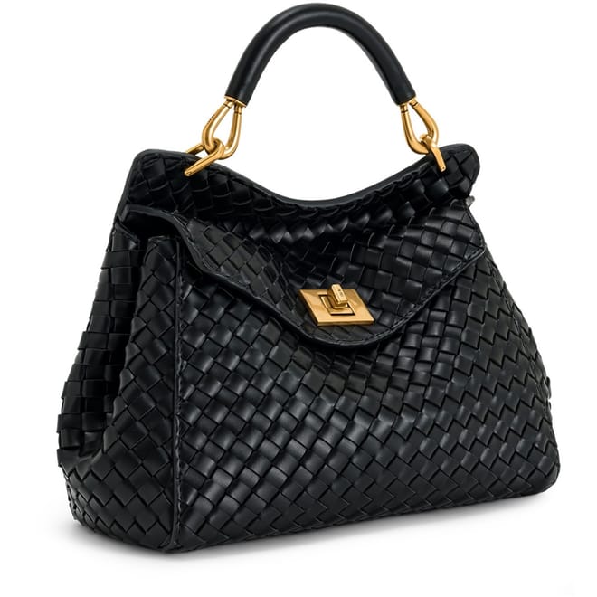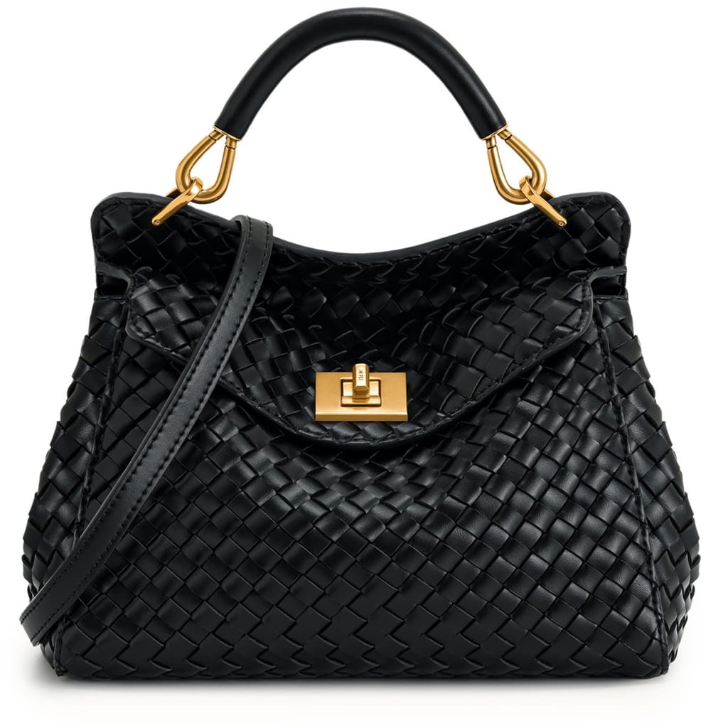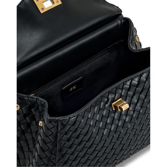 The JW Pei Lucia handbag features a sophisticated basket weave pattern, offering a stylish and textured look. Designed with a secure clasp closure, it ensures your belongings are kept safe. The top handle provides a comfortable grip, while the zipped pocket adds practicality for organizing essentials. This elegant piece is perfect for those seeking a blend of fashion and functionality. -