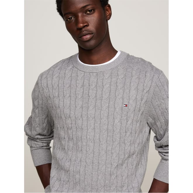 Elevate your everyday essentials with this comfortable Classic Cotton Cable Crew Neck from Tommy Hilfiger. Add a layer of luxury to your seasonal ensemble with this rib knit jumper.
