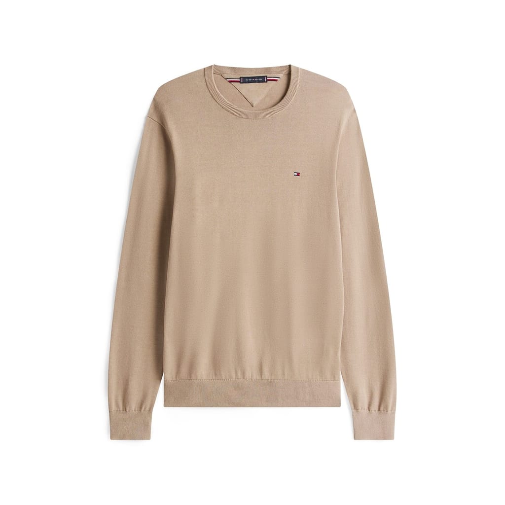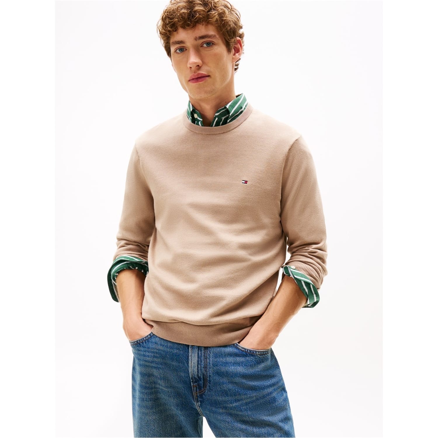 Add to your casual collection with this Crew Neck Jumper from Tommy Hilfiger. Crafted in a soft cotton, this jumper features a classic crew neckline with long sleeves and ribbed trims. The look is finished with the brand's signature logo embroidered to the chest.