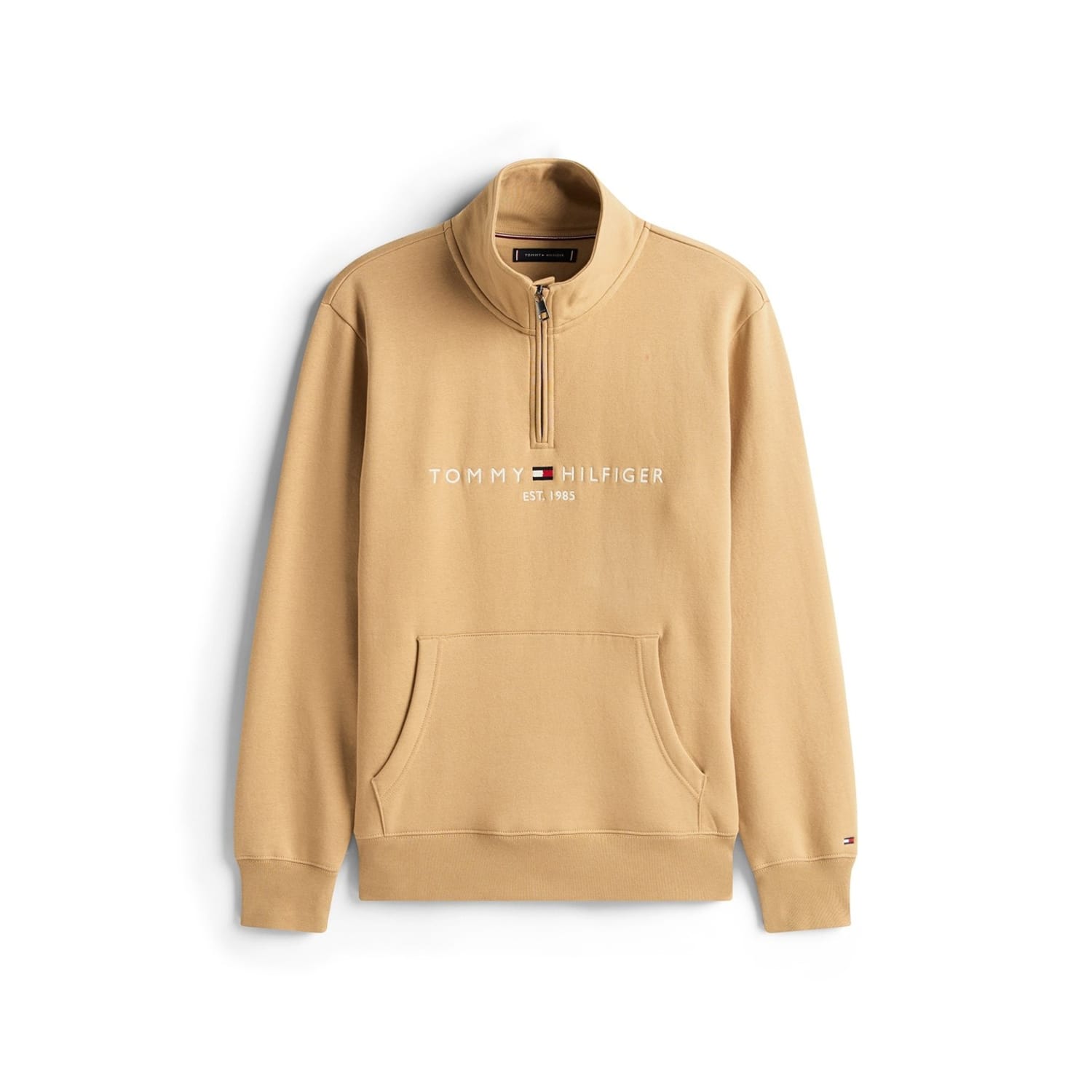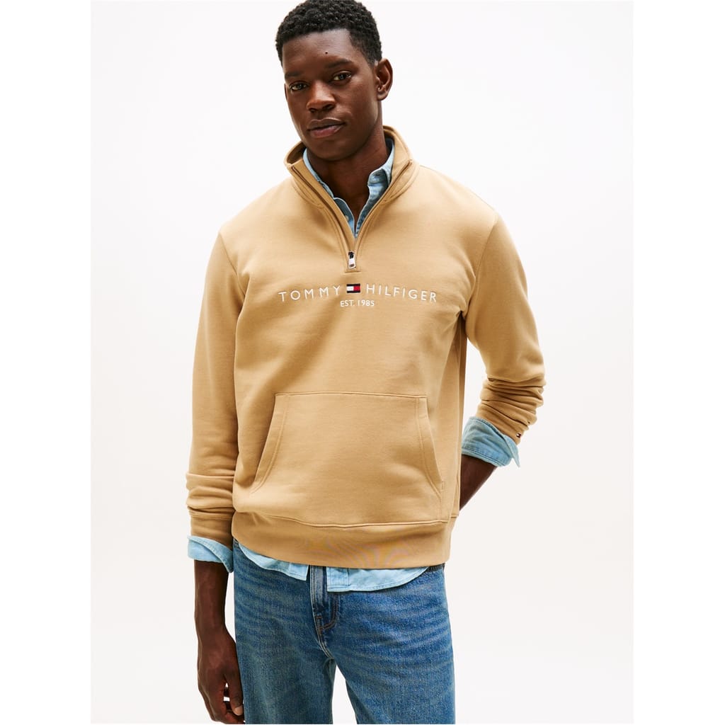 Welcome a vintage touch into your casual wardrobe with this Logo Mockneck Sweatshirt from Tommy Hilfiger. Crafted in a pure cotton composition, this sweatshirt is cut in a regular fit and features a half zip fastening with a mock neck, long sleeves, a straight hemline and ribbed trims for a comfortable wear. Decorated in a solid colour throughout, the look is finished with the Tommy Hilfiger name and the brand's signature flag embroidered across the chest for brand recognition.