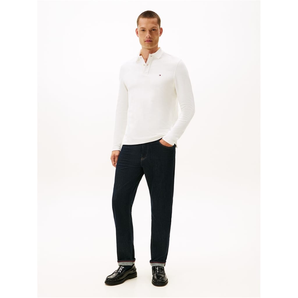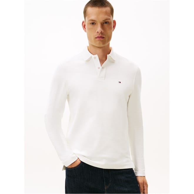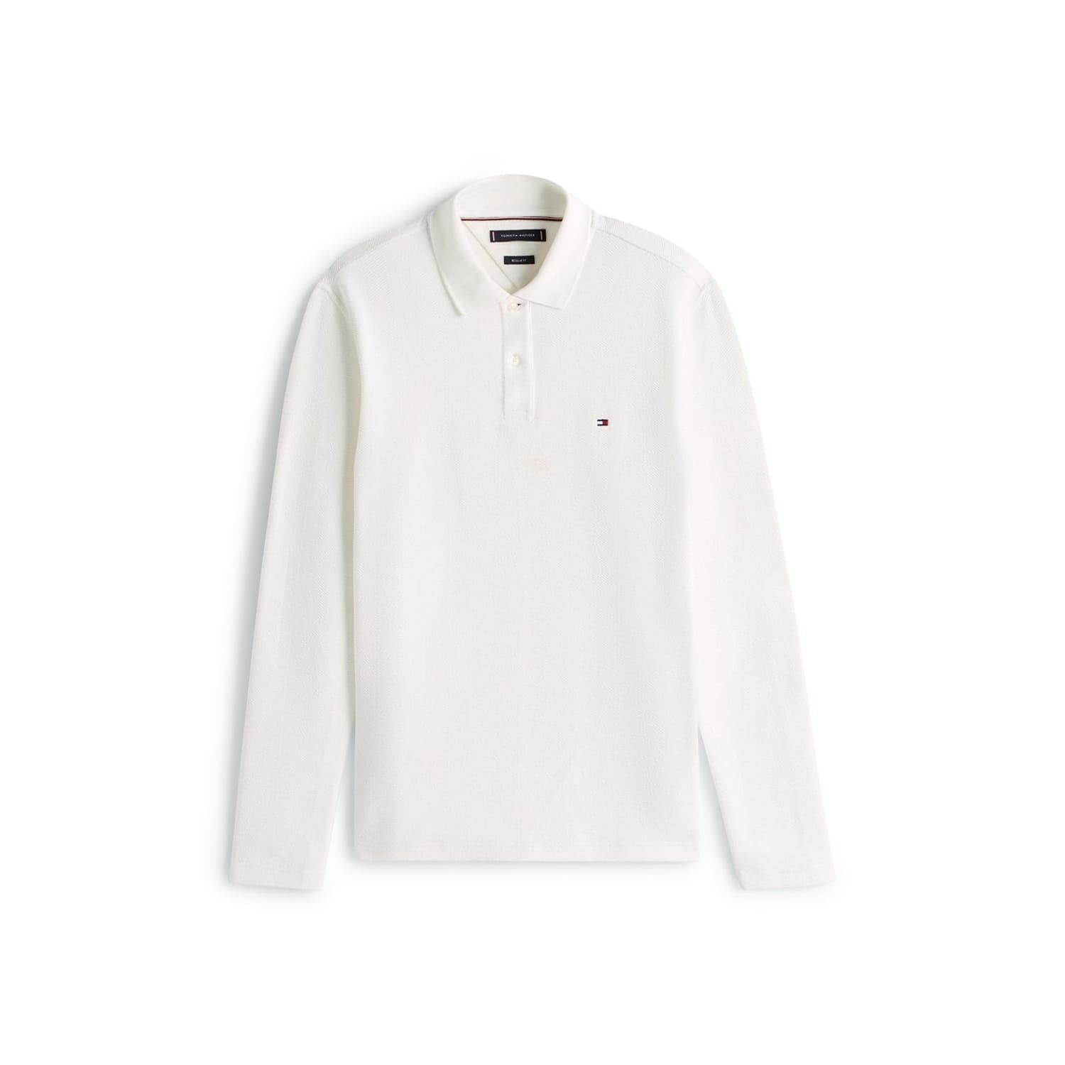 This Tommy Hilfiger top features a herringbone pattern and a polo collar, offering a classic look. Designed with long sleeves and a front button closure, it ensures a regular fit. The top is adorned with a subtle logo, making it suitable for all seasons. -