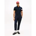 This Tommy Hilfiger top is perfect for summer with its short sleeves and regular fit. Featuring a polo collar and front button closure, it offers a classic look. The solid pattern adds a touch of elegance, while the ribbed cuff ensures a comfortable fit. -
