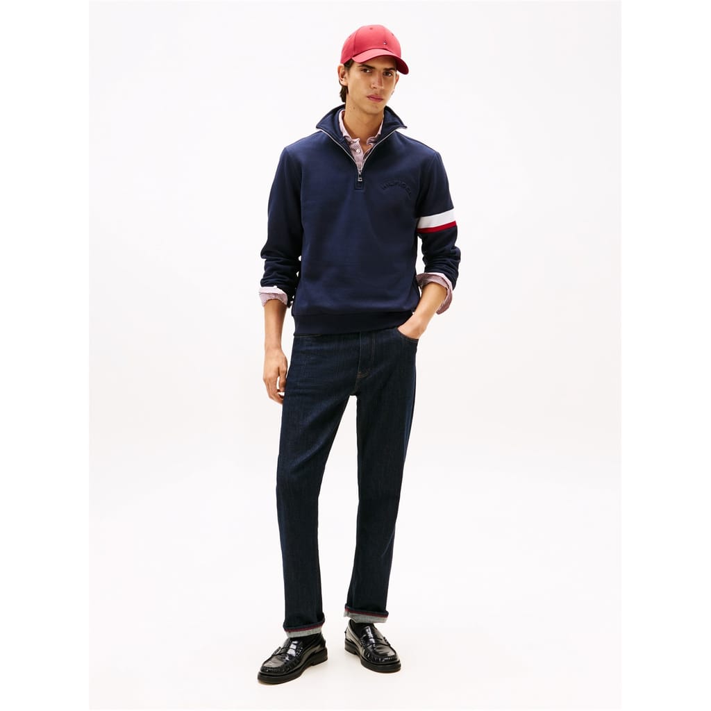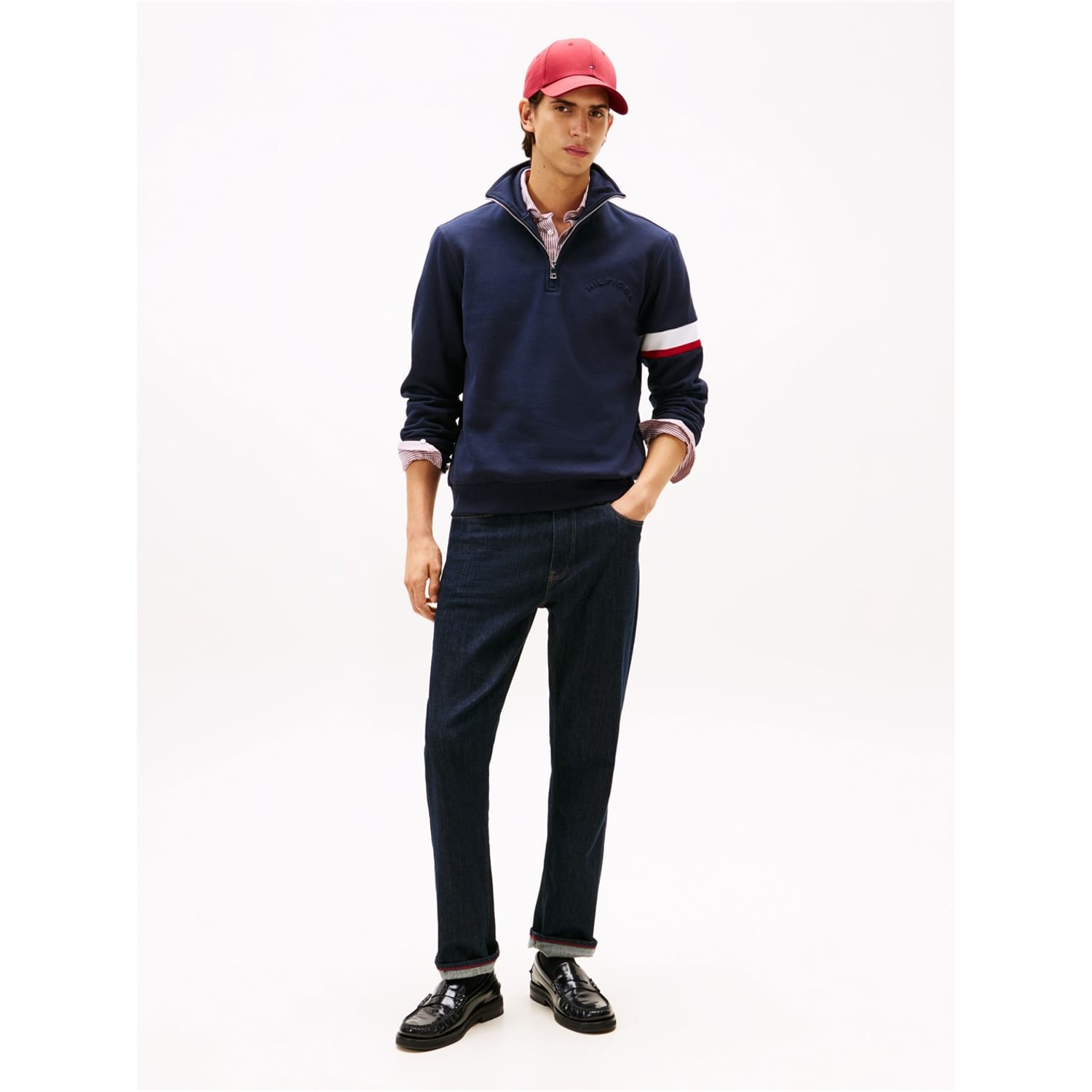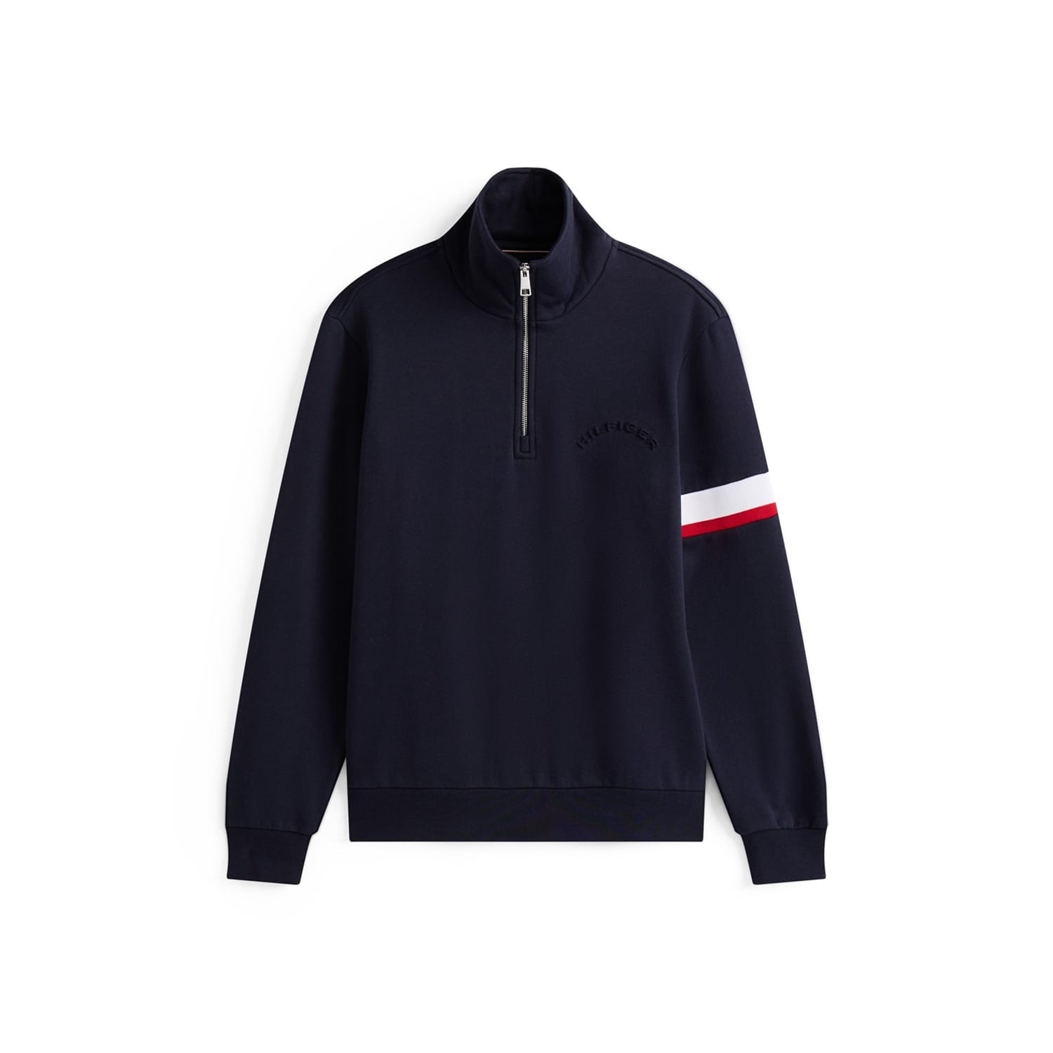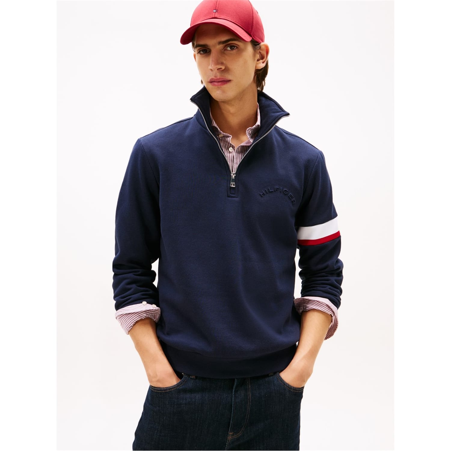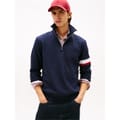 Discover the Tommy Hilfiger top, featuring a quarter zipper closure and a zip neck design. This long sleeve top is crafted for a regular fit and includes a high collar with ribbed cuffs. Its solid pattern makes it versatile for all seasons. -
