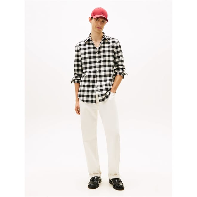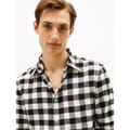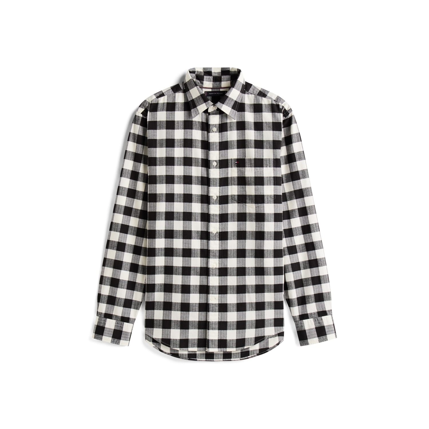 This Tommy Hilfiger top features a stylish checkerboard pattern with a regular fit. The long sleeves are complemented by a shirt collar and barrel cuffs, adding a classic touch. The full button closure enhances its structured look, while a pocket provides practical embellishment. Ideal for those seeking a patterned design with a timeless appeal. -