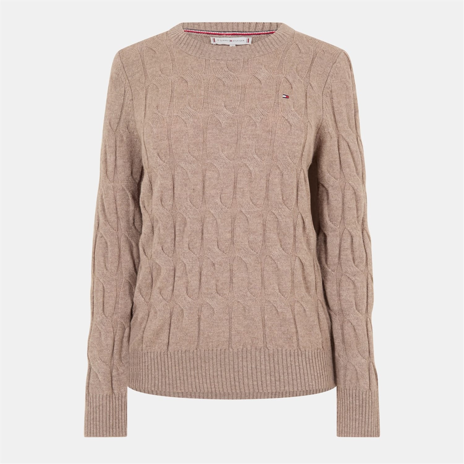 This Tommy Hilfiger top features a classic cable knit pattern, offering a timeless appeal. Designed with long sleeves and ribbed cuffs, it ensures comfort and style. The regular fit provides a relaxed yet polished look, making it a versatile addition to any wardrobe. -