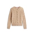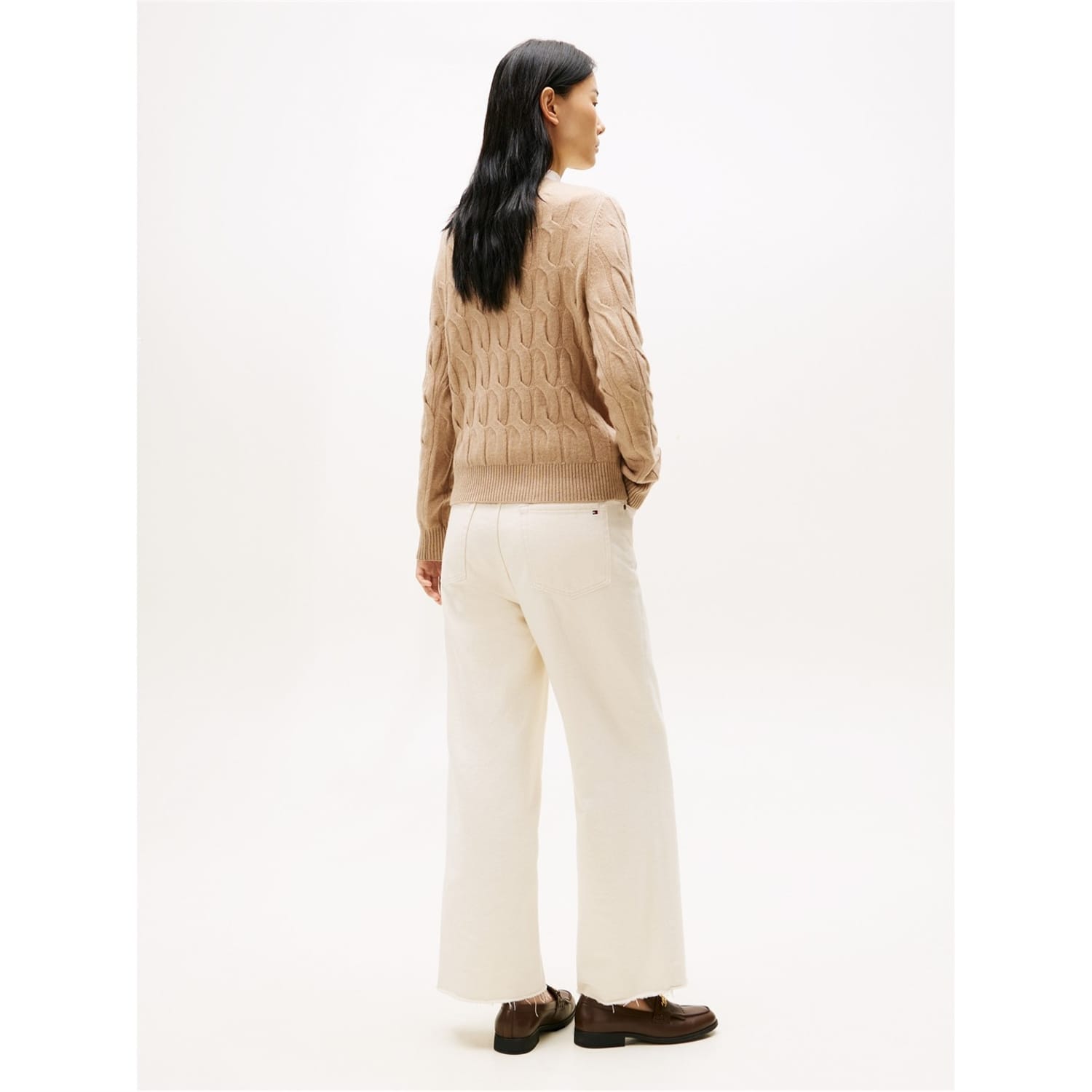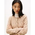 This Tommy Hilfiger top features a classic cable knit pattern, offering a timeless appeal. Designed with long sleeves and ribbed cuffs, it ensures comfort and style. The regular fit provides a relaxed silhouette, while the crew neck adds a touch of simplicity. A button closure completes the look, making it a versatile addition to any wardrobe. -