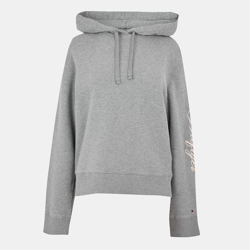 Discover the Tommy Hilfiger top featuring a hooded neck and long sleeves. This regular fit piece is crafted with ribbed cuffs for added comfort. The solid pattern adds a classic touch, making it a versatile addition to your wardrobe. -
