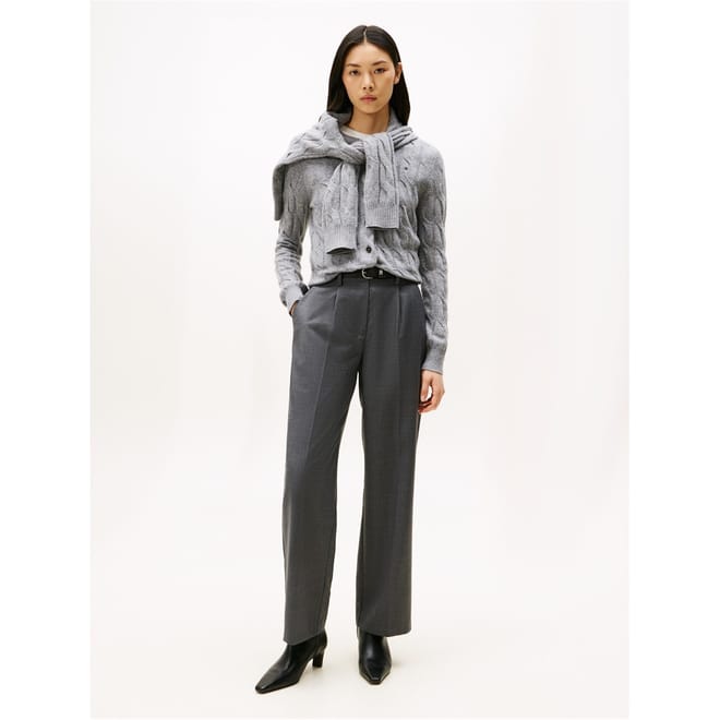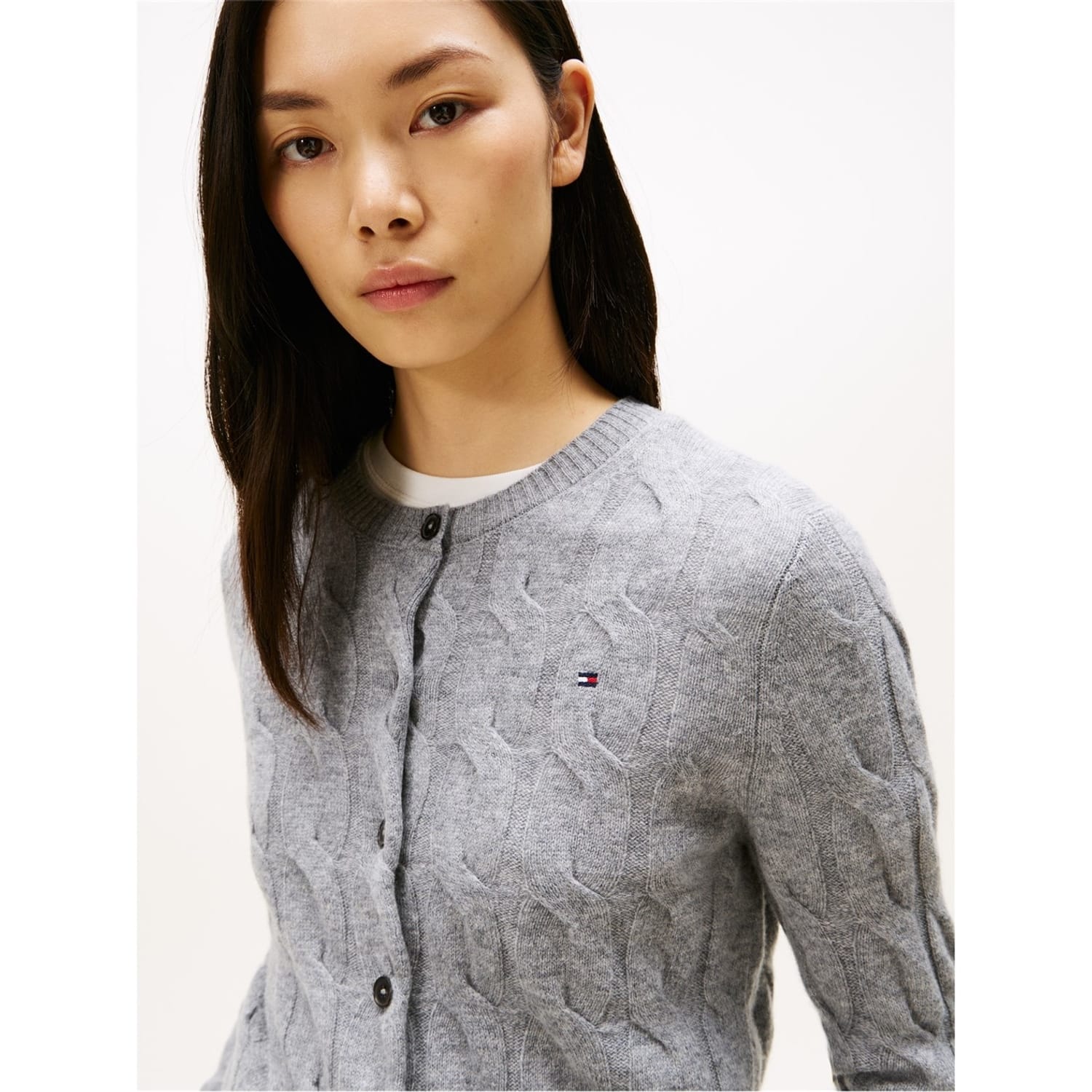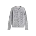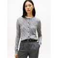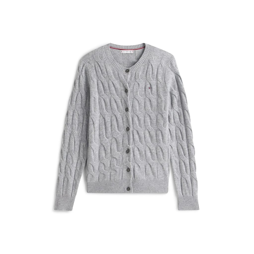 This Tommy Hilfiger top features a classic cable knit pattern, offering a timeless appeal. Designed with long sleeves and a crew neck, it ensures comfort and style. The regular fit provides a relaxed silhouette, while the ribbed collar and cuffs add a touch of detail. A button closure completes the look, making it a versatile addition to any wardrobe. -