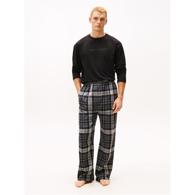 Tommy Hilfiger sleepwear features a plaid design with regular fit. The elasticated waistband ensures comfort, while the pocket and waistband logo add subtle embellishments. Part of the loungewear collection, this two-piece pyjama set is perfect for relaxed evenings. -