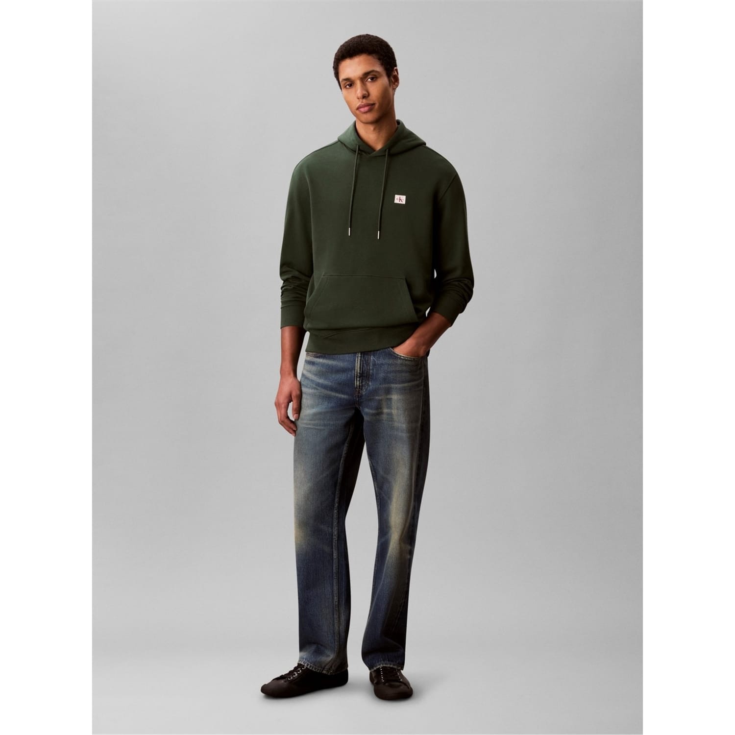 This Calvin Klein Jeans top features a hooded neck and long sleeves, offering a regular fit. Crafted from woven fabric, it includes a drawstring closure and ribbed cuffs. The solid pattern adds a classic touch to this versatile piece. -