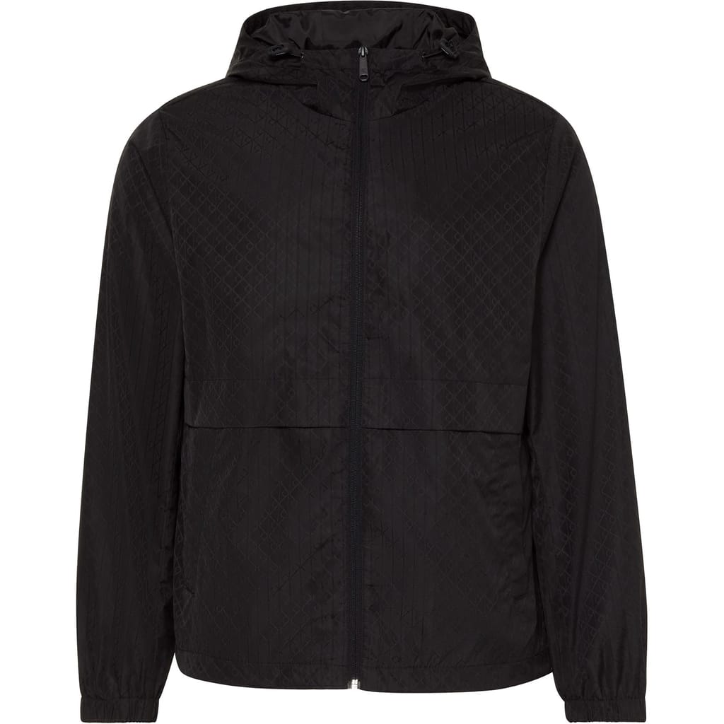 This Calvin Klein Jeans windbreaker features a hooded design and a regular fit, offering both style and comfort. The jacket is adorned with an all-over print and a logo embellishment, adding a distinctive touch. It includes a zipper closure and elasticated cuffs, complemented by a straight hem for a sleek finish. -
