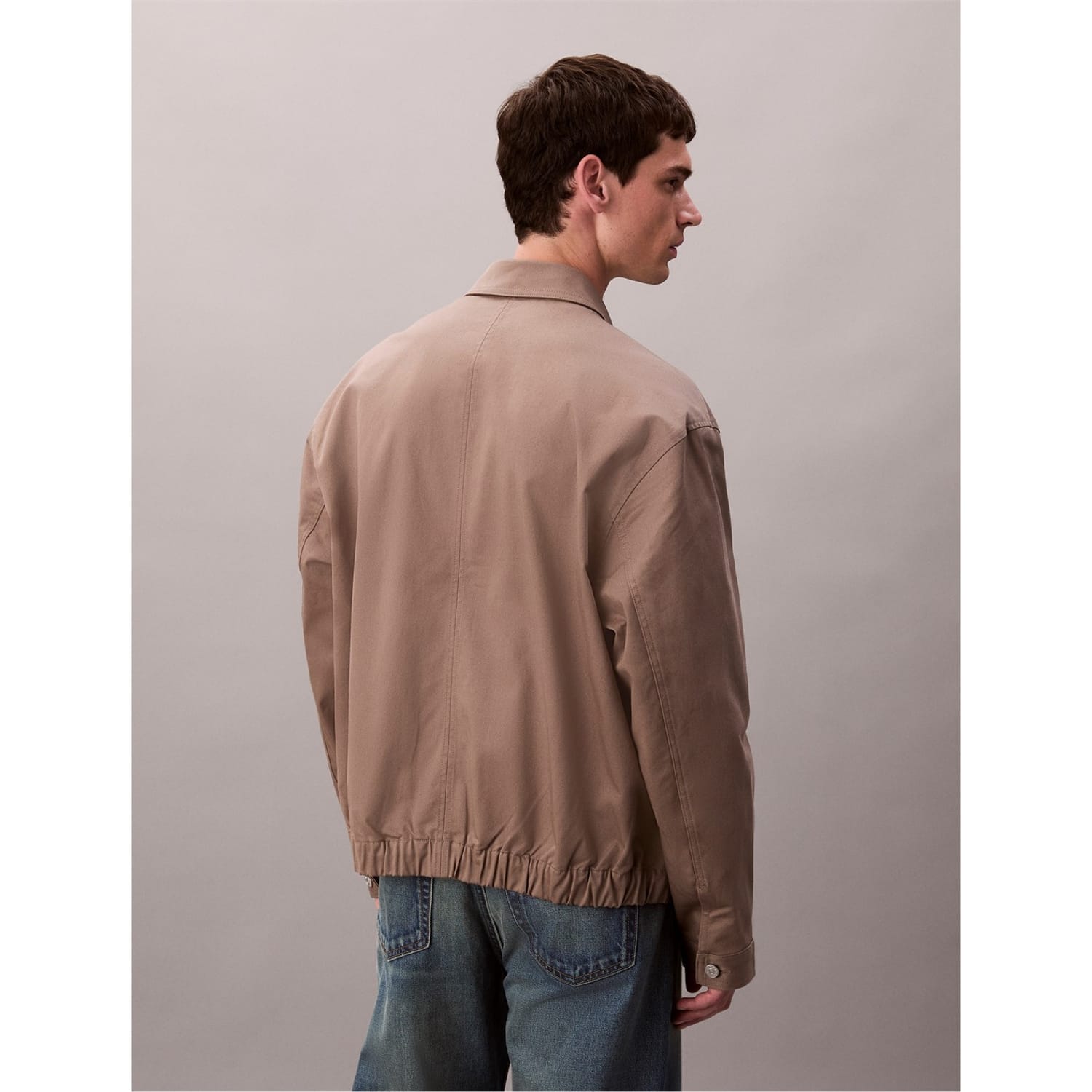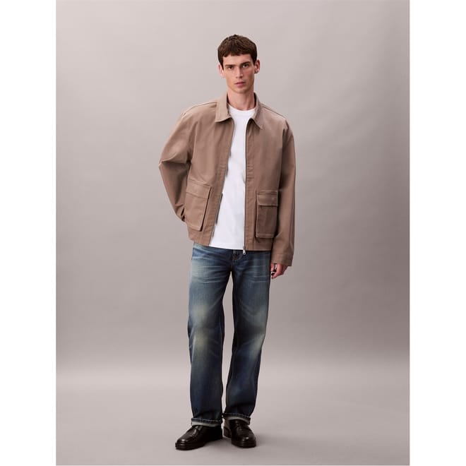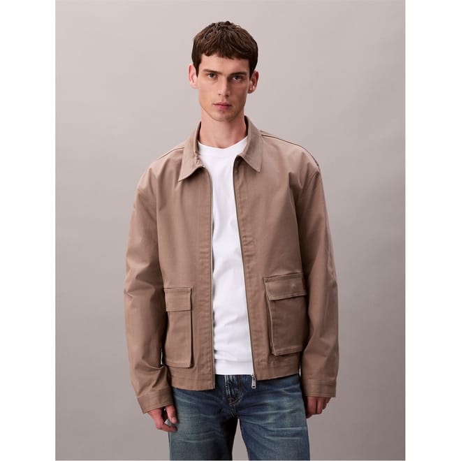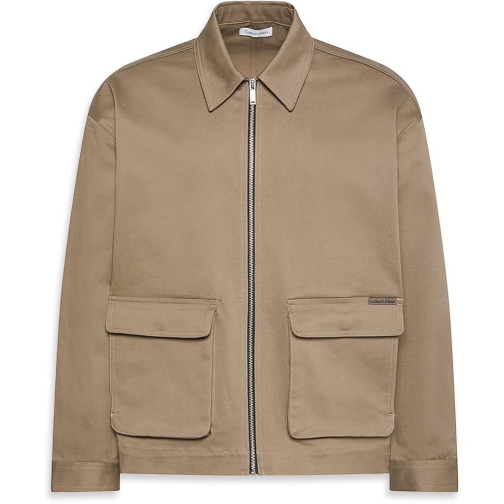 This Calvin Klein Jeans cargo jacket features a classic shirt collar and a practical zipper closure. Designed in a short length with a regular fit, it offers a solid pattern and a straight hem. The jacket is embellished with pockets, adding functionality to its stylish design. -