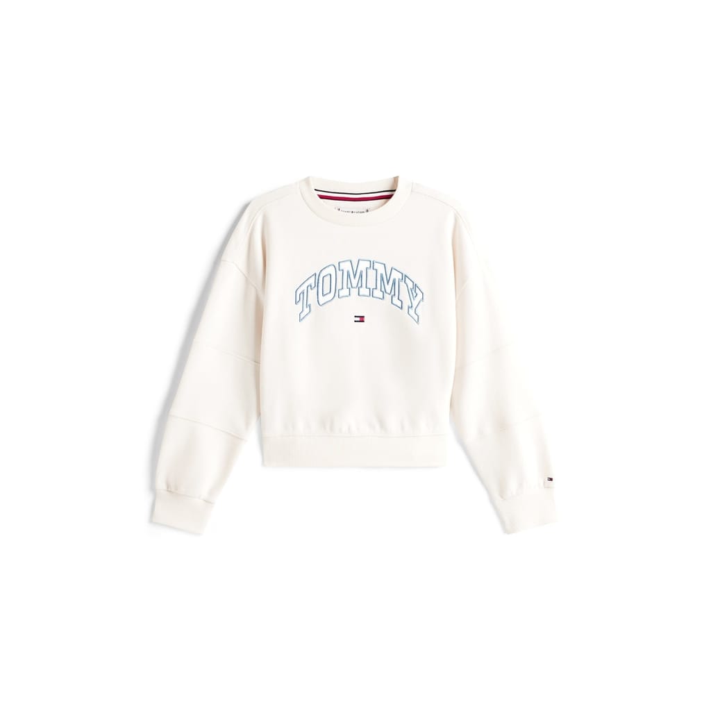 Tommy Hilfiger's Kids' Varsity Crew-Neck Sweatshirt delivers classic collegiate style with brand detailing. The relaxed fit offers comfortable casual everyday wear for children, finished with ribbed trims and crew-neck design for a secure fit.