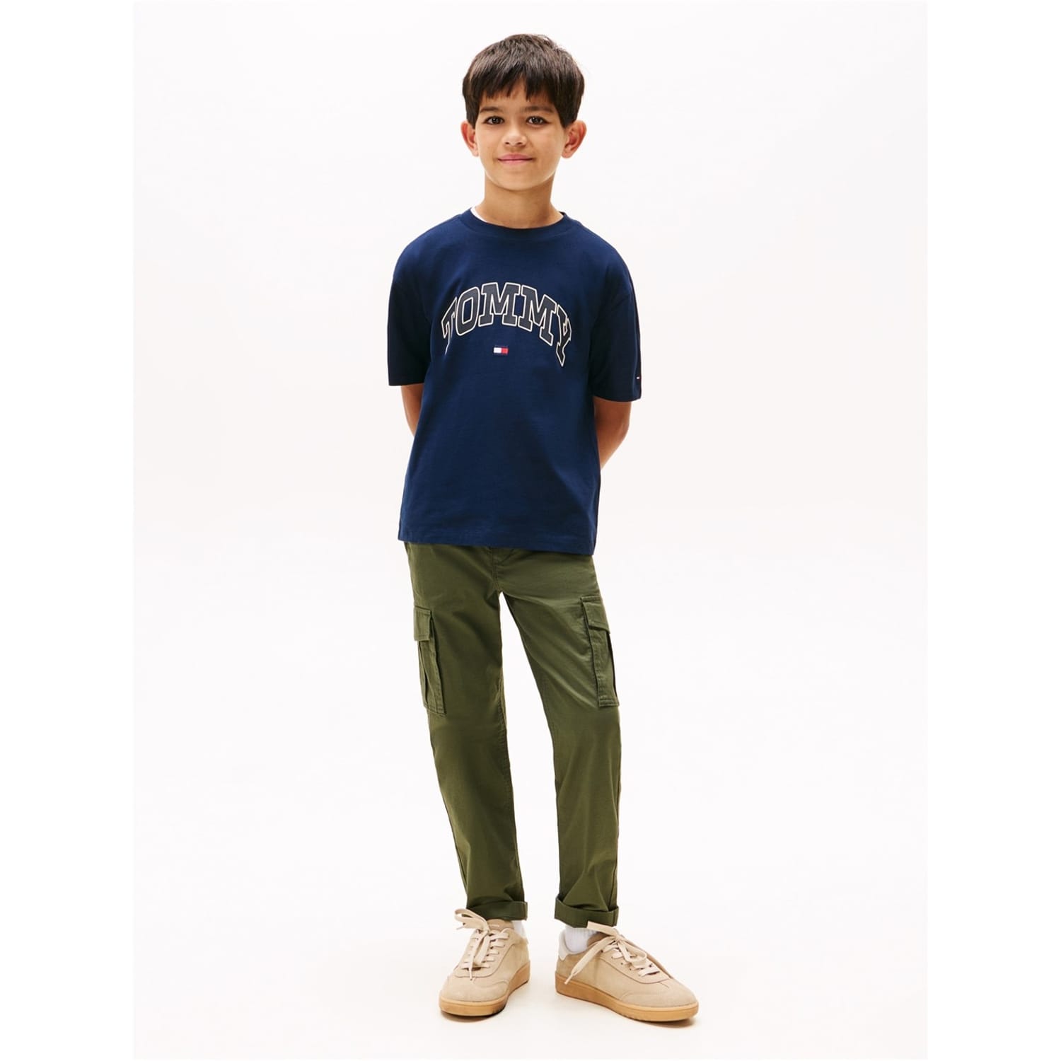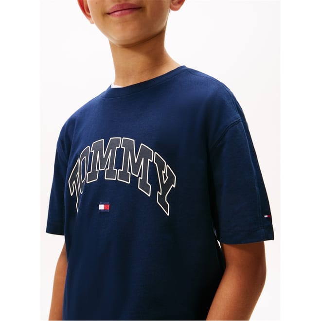 Tommy Hilfiger's Kids' Varsity Regular Fit T-Shirt defines casual style with its traditional shape and characteristic aesthetic detailing. Classic Tommy Hilfiger branding completes this essential children's tee, while the regular cut ensures unrestricted movement for active youth.