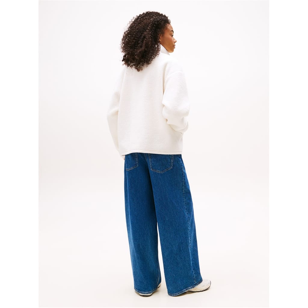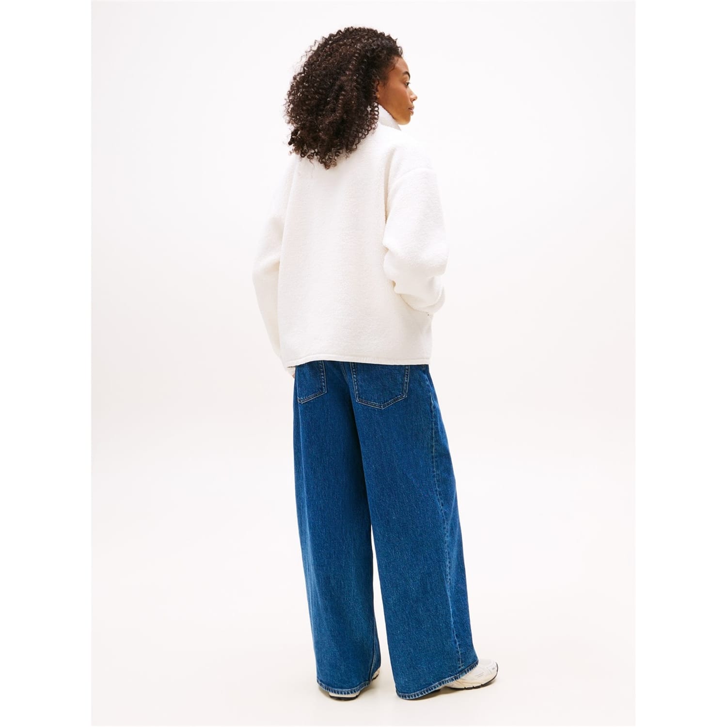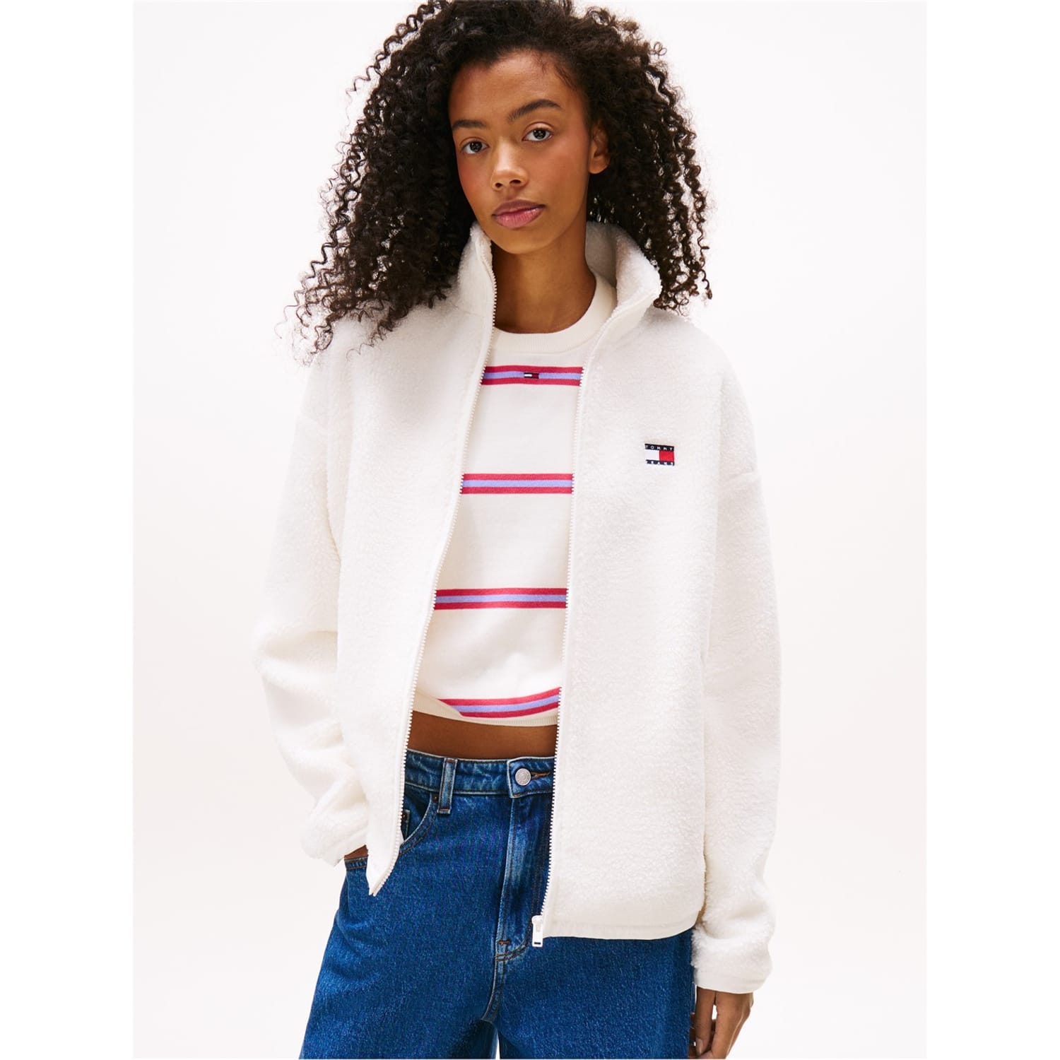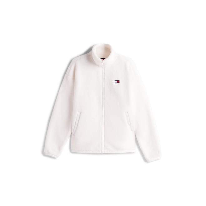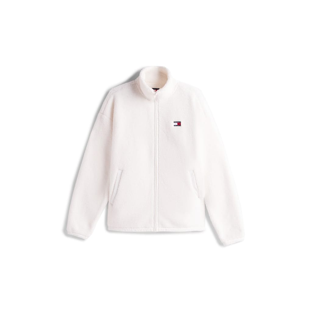 Discover the Tommy Jeans Teddy Jacket, a stylish addition to your wardrobe. This short, regular fit jacket features a zip neck and a quarter zipper closure for easy wear. The solid pattern and straight hem create a clean look, while the iconic logo embellishment adds a touch of brand identity. Perfect for those seeking a blend of comfort and style. -