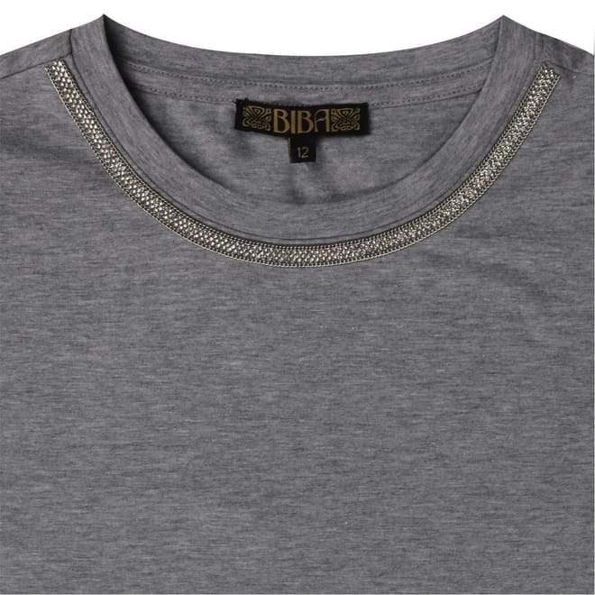 This Biba top features a regular fit and a classic crew neck, offering a comfortable and stylish choice for any occasion. The short sleeves and solid pattern provide a timeless look, while the rhinestone embellishments add a touch of elegance. Perfect for those who appreciate subtle yet sophisticated details in their wardrobe. -