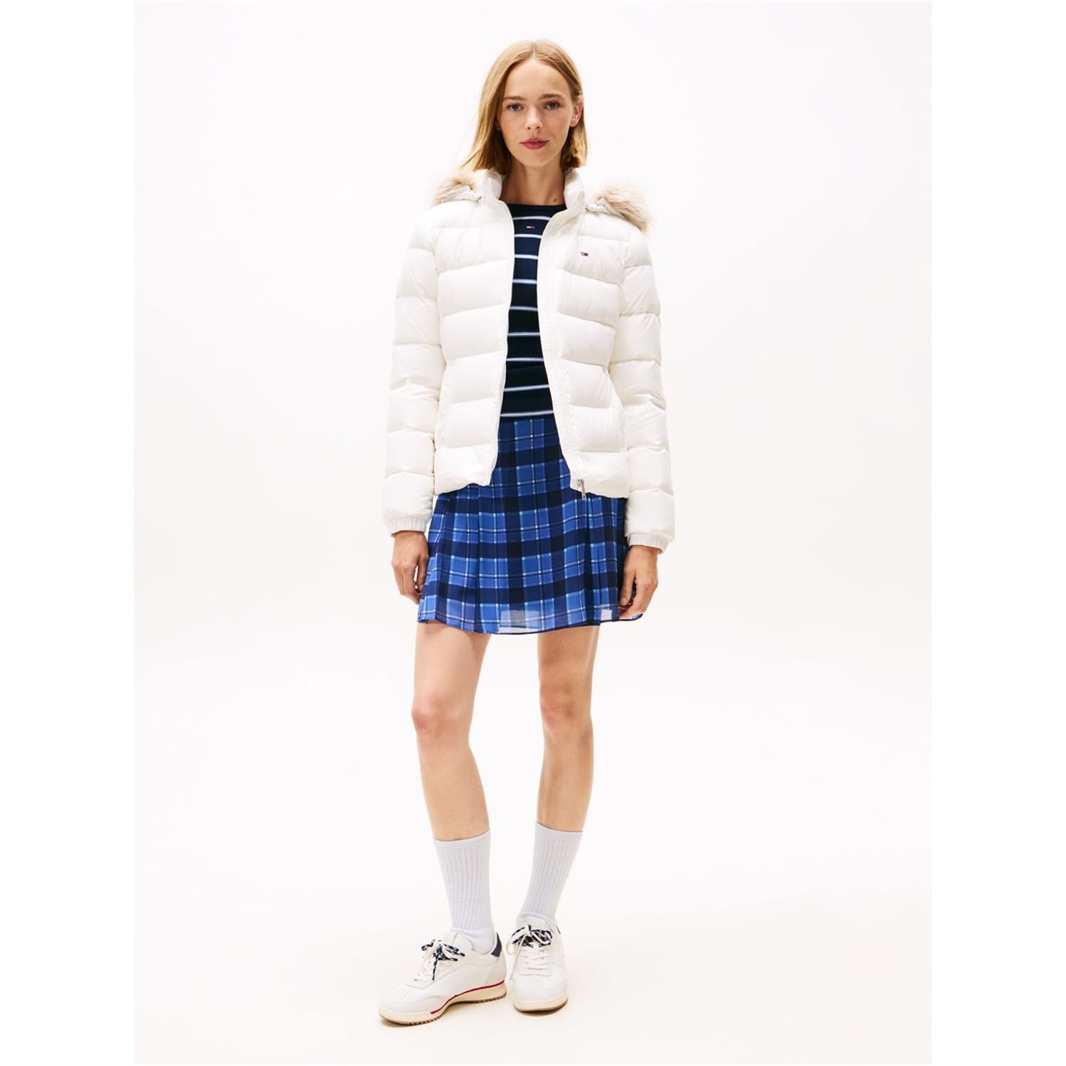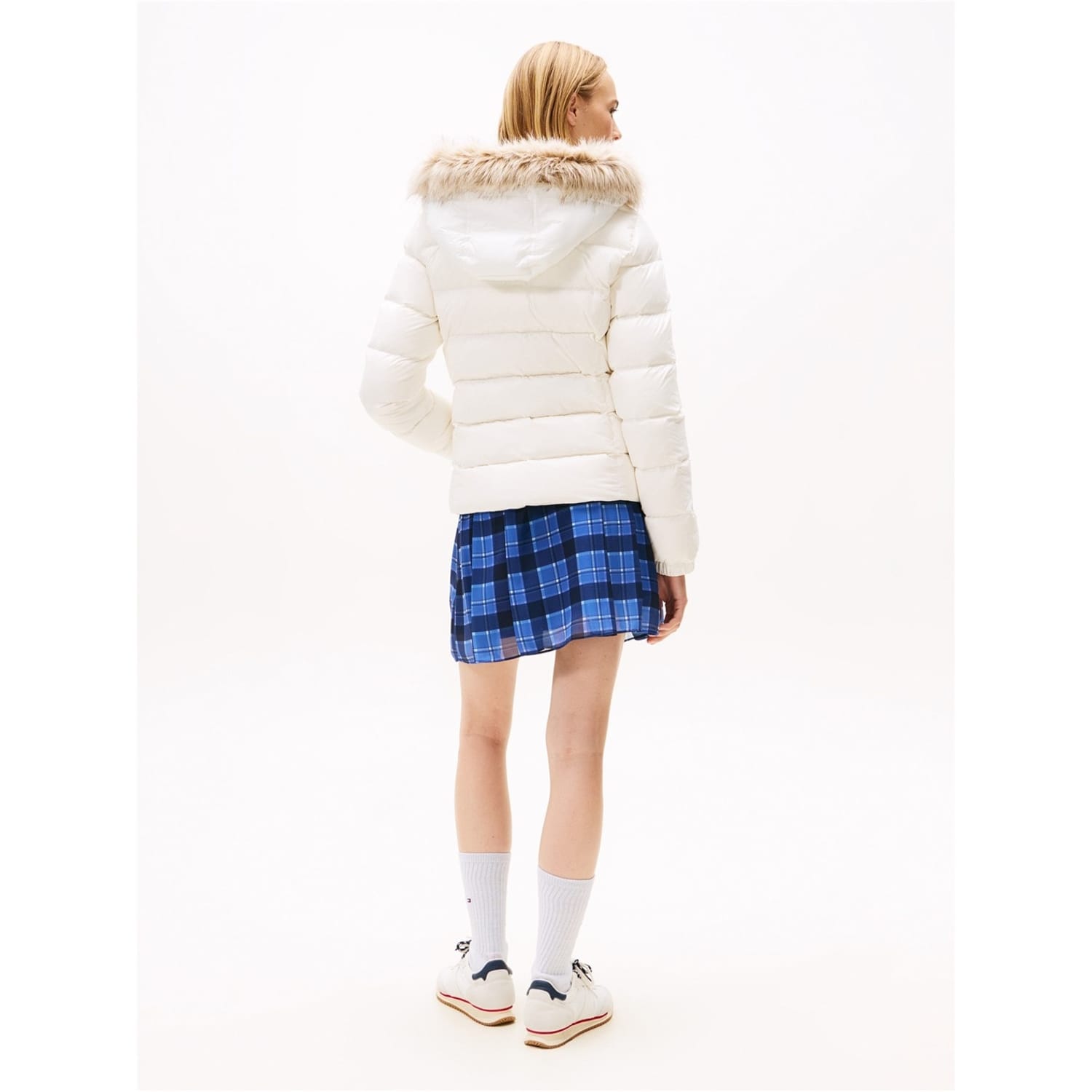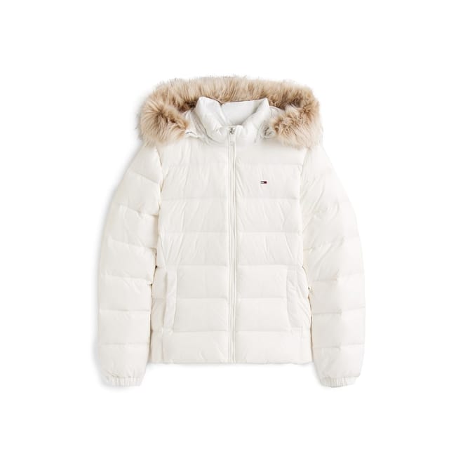 Add to your outerwear collection with the Tommy Jeans Essential Puffer Jacket. Crafted with long sleeves and a full zip closure, this piece features an all over quilted design. Complete with two side pockets and ribbed trims for a comfortable fit, this puffer jacket is finished with Tommy Jeans branding and a fur trim hood. Invest in this piece for the colder months.