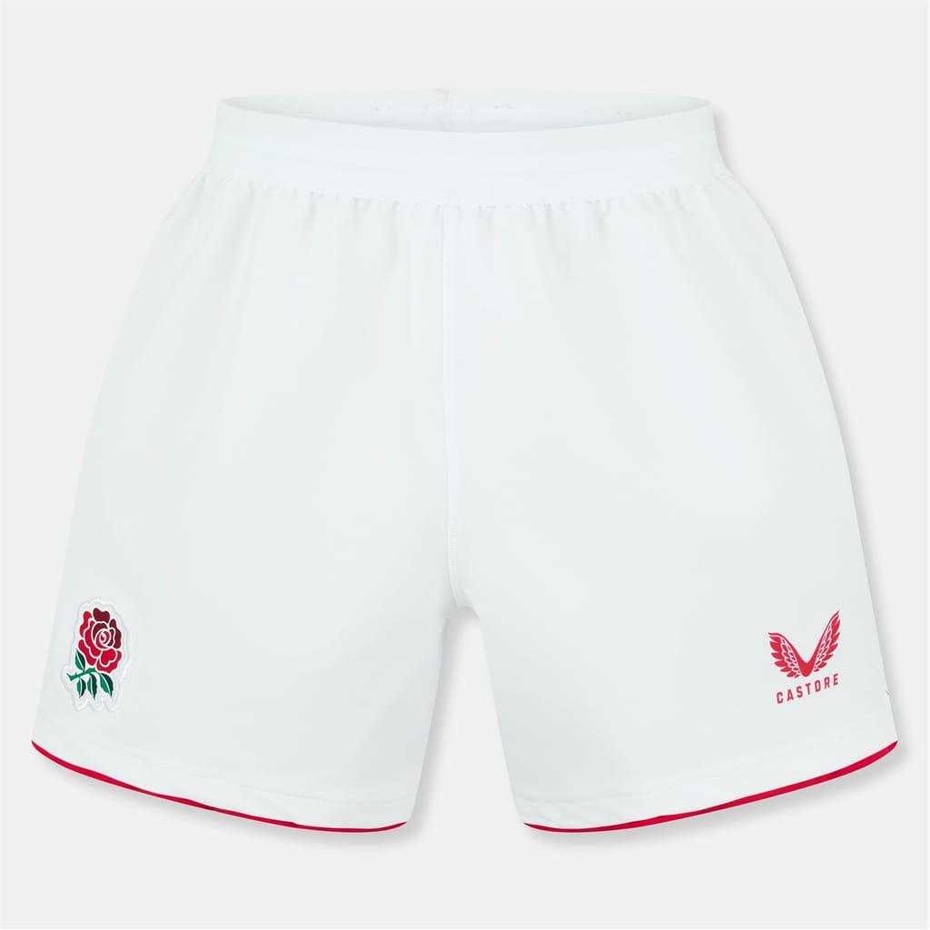 Represent the Red Roses in style with the Castore England Home Shorts 2025 2026. Designed in a classic white colourway, the shorts feature an elasticated waistband with an internal drawcord for a comfortable fit. Completed with the Rose crest on right thigh for an iconic finish, these shorts are perfect for matchdays, training sessions or relaxing with a sporty edge.
