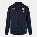 This Castore top from the outerwear collection features a hooded neck and a full zipper closure. Designed with long raglan sleeves and ribbed cuffs, it offers a regular fit. The solid pattern is complemented by an embroidered logo, adding a touch of distinction to this piece. -