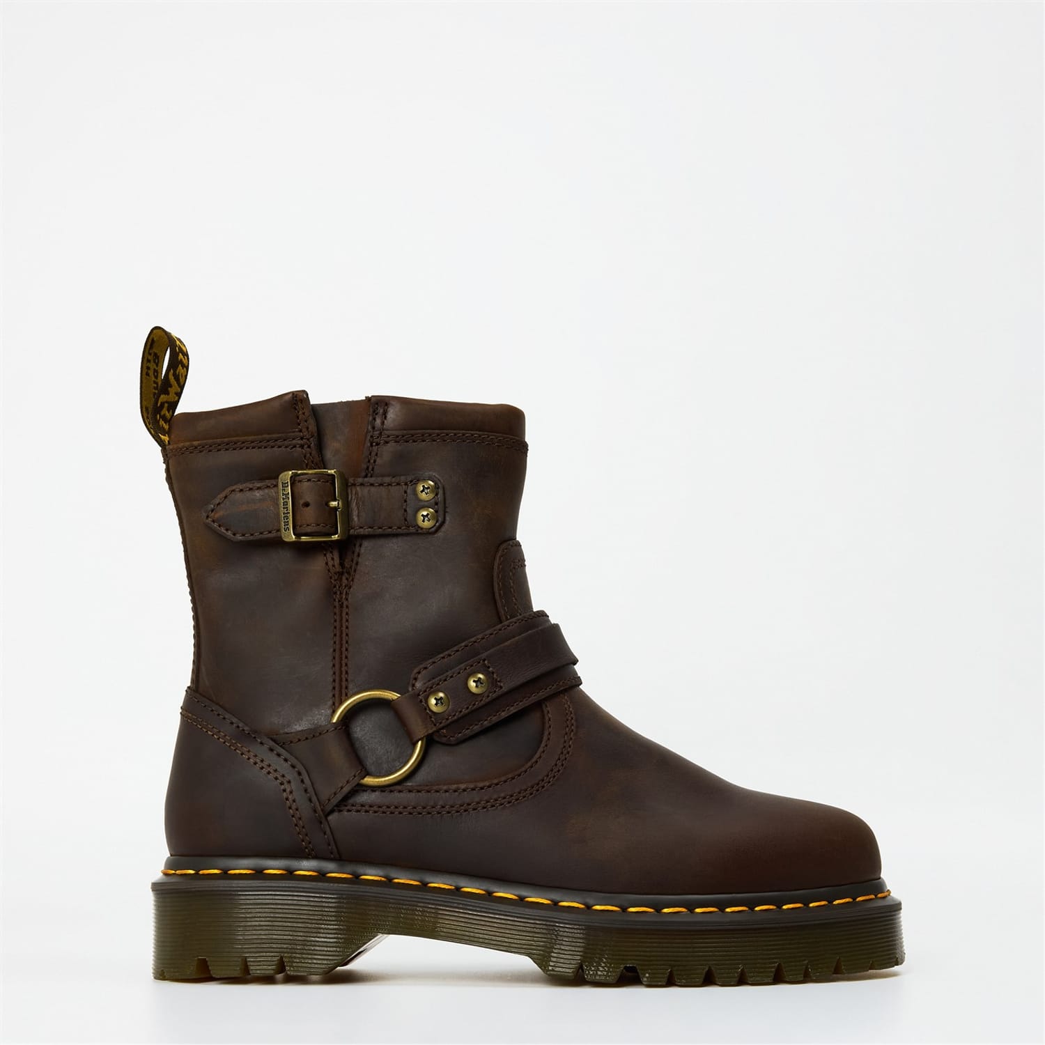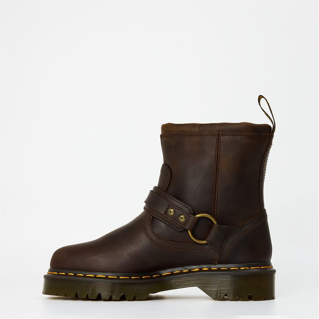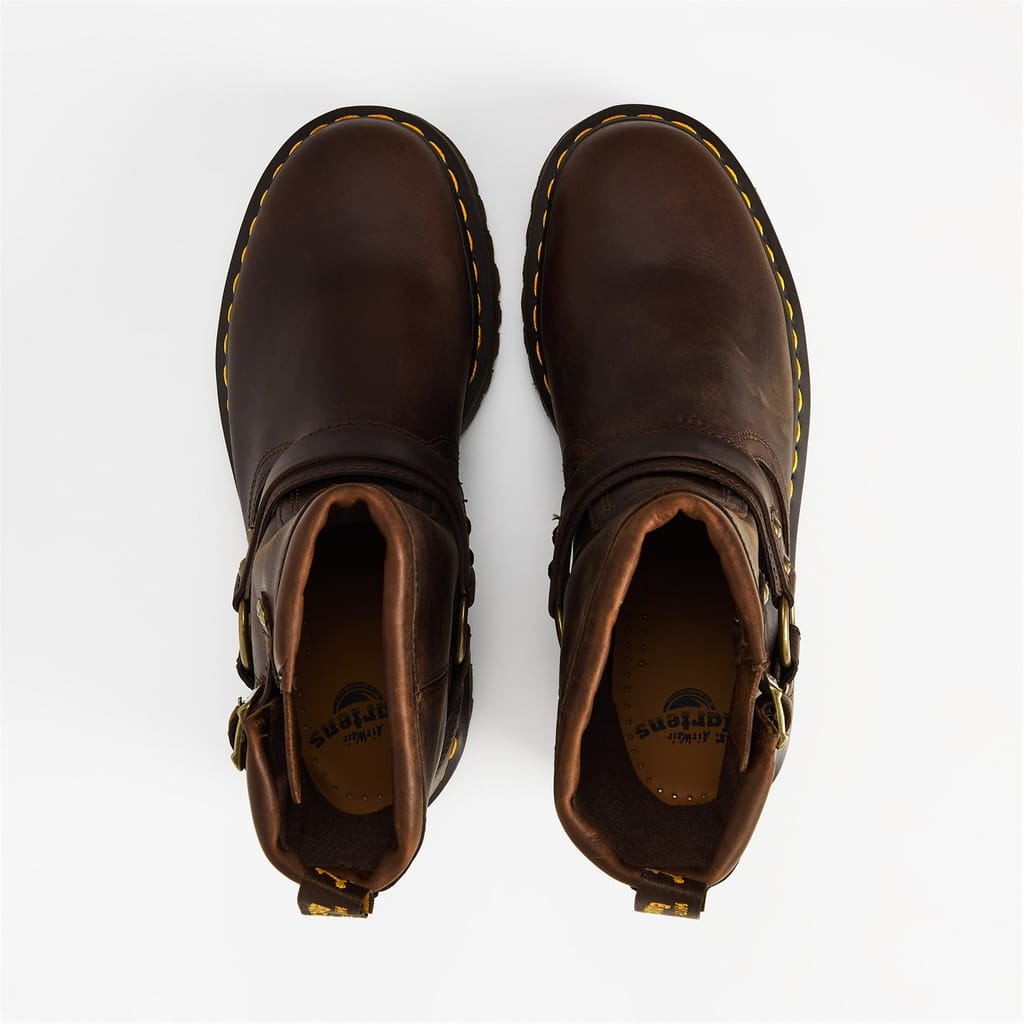 Discover the rugged appeal of Dr. Martens motorcycle boots, designed for those who appreciate both style and durability. These round-toe boots offer a distinctive look, perfect for making a statement. Crafted with precision, they embody the iconic Dr. Martens aesthetic, ensuring comfort and resilience for any adventure. -