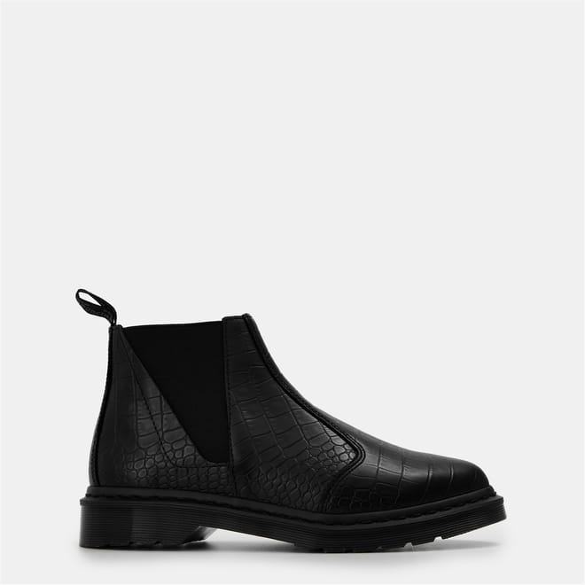 Step into style with Dr. Martens Chelsea boots, featuring a striking snake skin texture. These boots offer a unique twist on the classic design, combining the iconic Dr. Martens durability with a bold pattern. Perfect for those seeking a distinctive look, these boots are a standout addition to any footwear collection. -