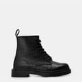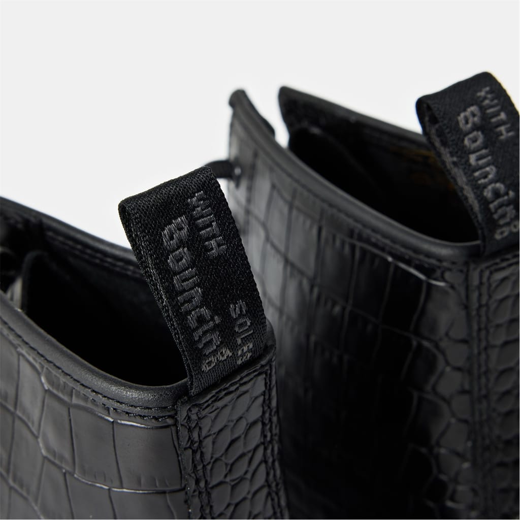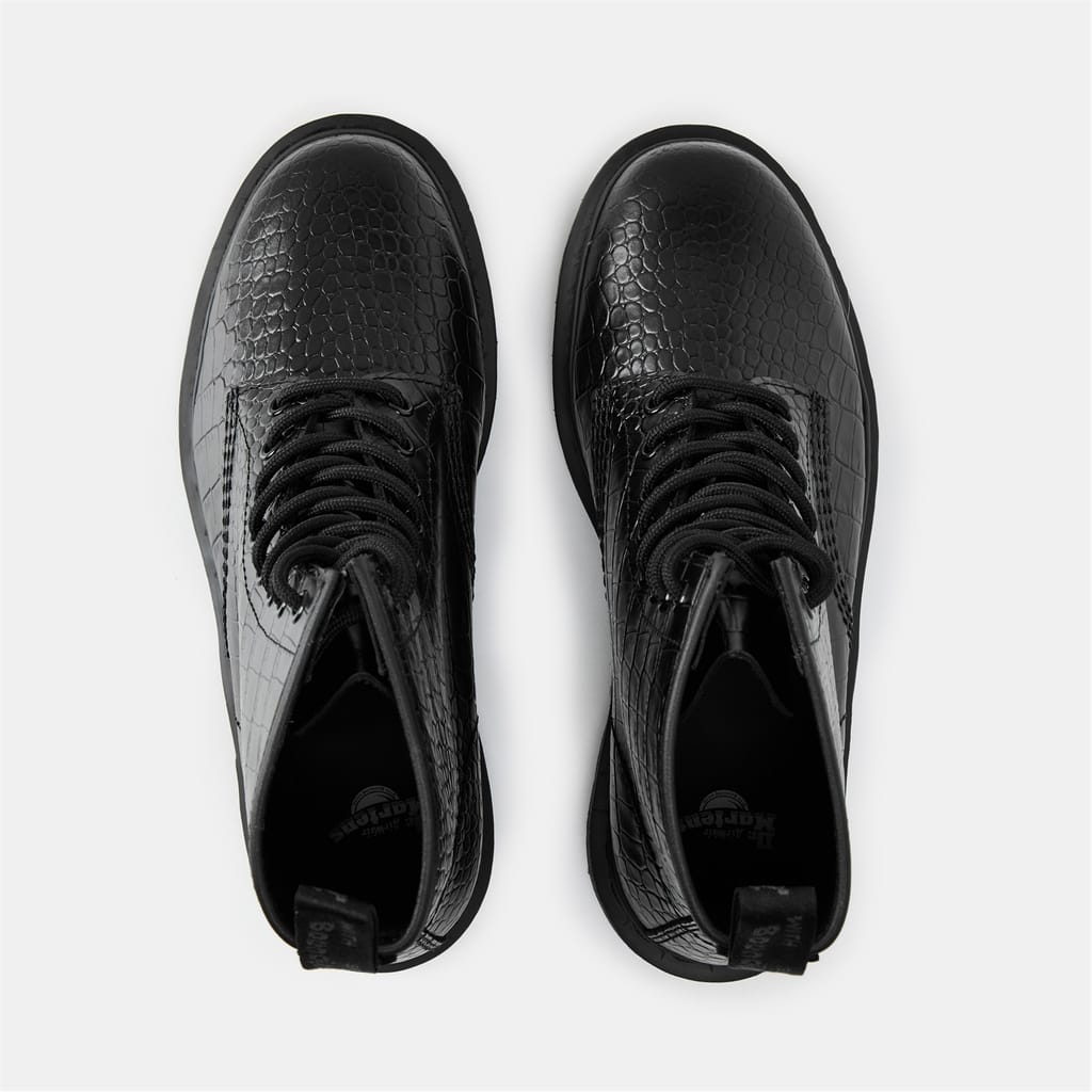 Discover the iconic Dr. Martens combat boots, a staple in the world of shoes. These boots feature a distinctive snake skin textured pattern, adding a unique touch to your footwear collection. Designed with a round toe, they offer both style and comfort. Perfect for those seeking a bold and edgy look, these boots are a must-have for any fashion-forward wardrobe. -