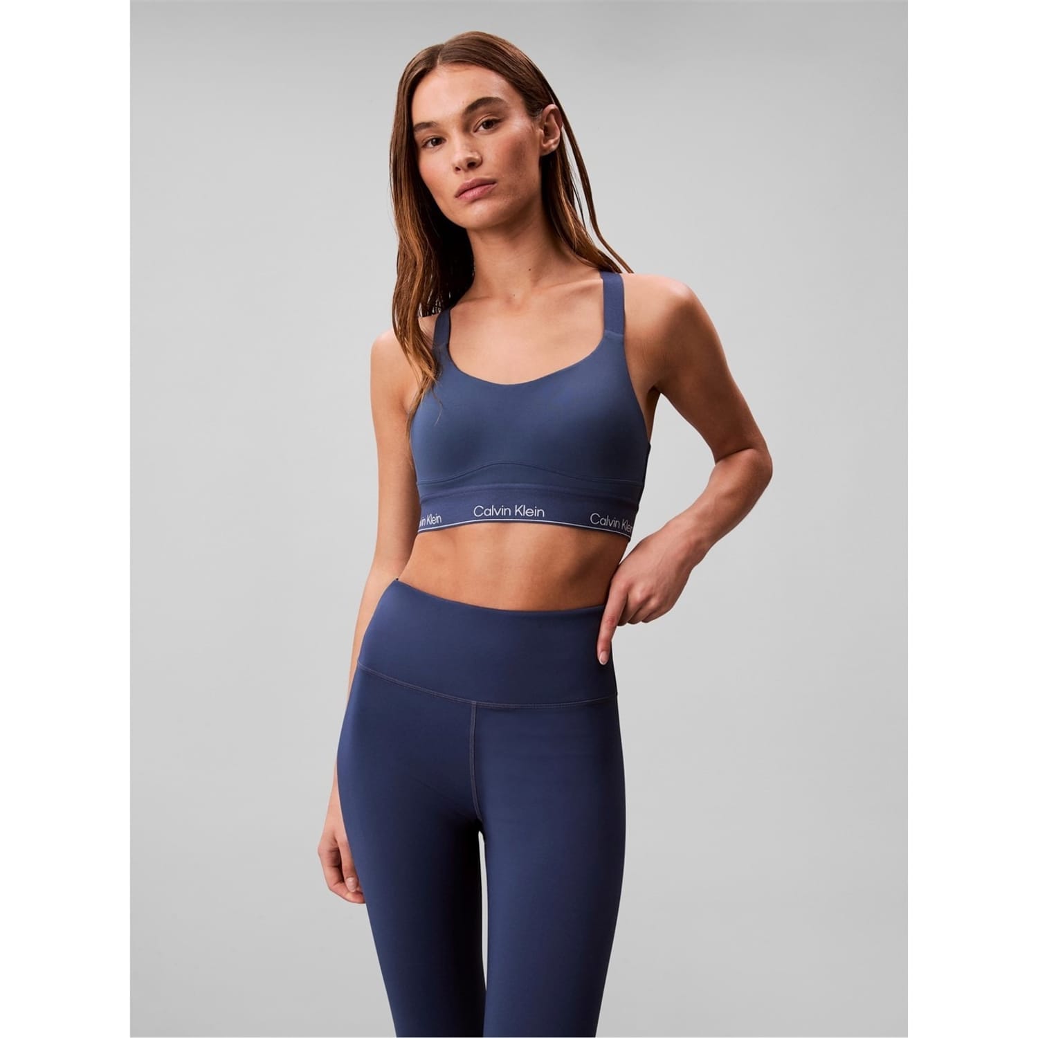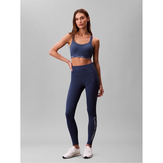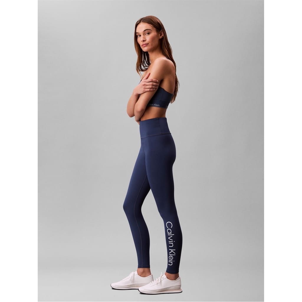 Calvin Klein leggings offer a sleek design with a shapewear style, perfect for a streamlined look. Featuring a distinctive leg logo and wordmark graphic, these leggings combine style and comfort effortlessly. -