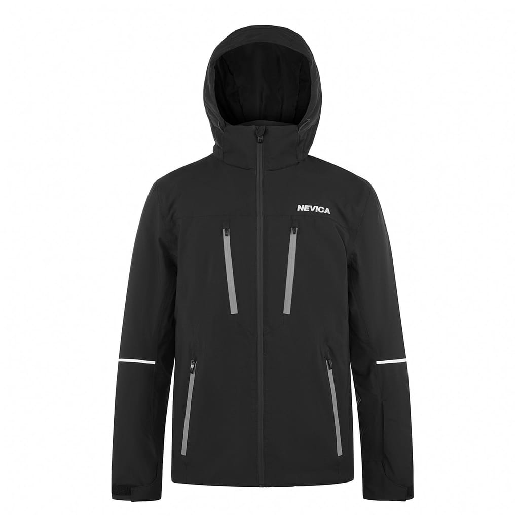 The Nevica ski jacket is designed for optimal performance on the slopes. Featuring a hooded neckline and a zipper closure, it ensures comfort and protection against the elements. The regular fit and solid pattern offer a sleek look, while the straight hem provides a classic finish. The jacket is embellished with a logo, adding a touch of brand identity. -