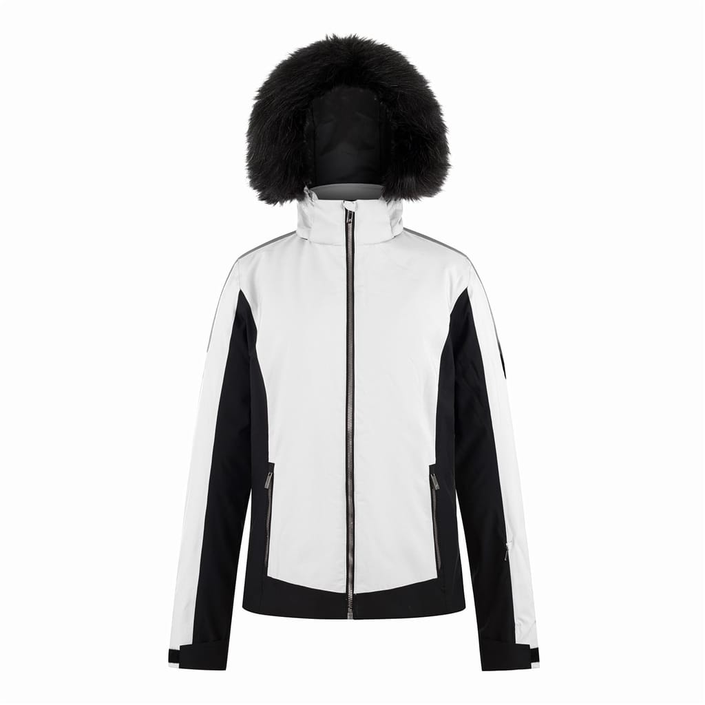 This Nevica ski jacket features a hooded neckline and a zipper closure, offering a regular fit. The colour block pattern adds a stylish touch, making it a practical choice for winter sports enthusiasts. -
