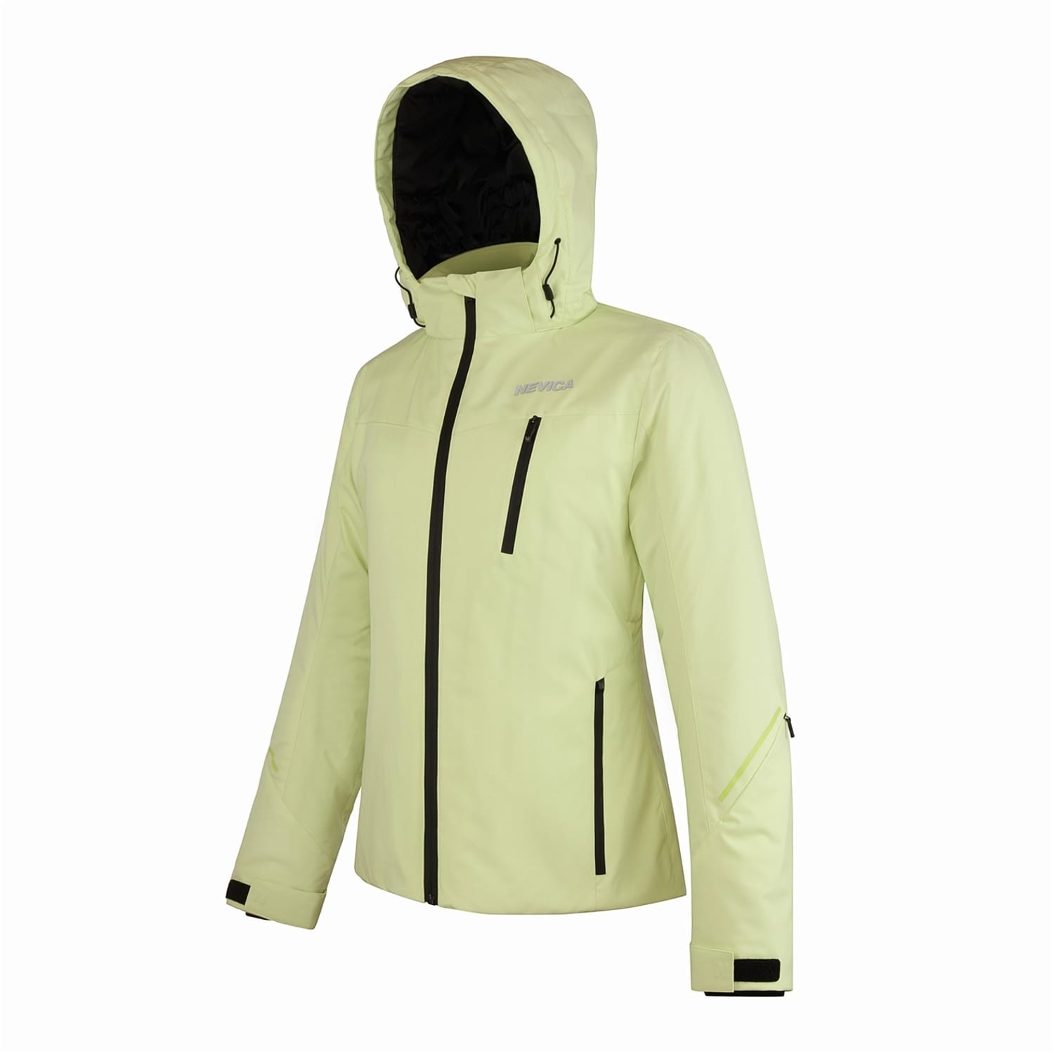 Stay warm and stylish on the slopes with the Nevica ski jacket. Featuring a hooded neckline and a solid pattern, this jacket offers a regular fit for comfort. The zipper closure ensures easy wear, making it a practical choice for winter adventures. -