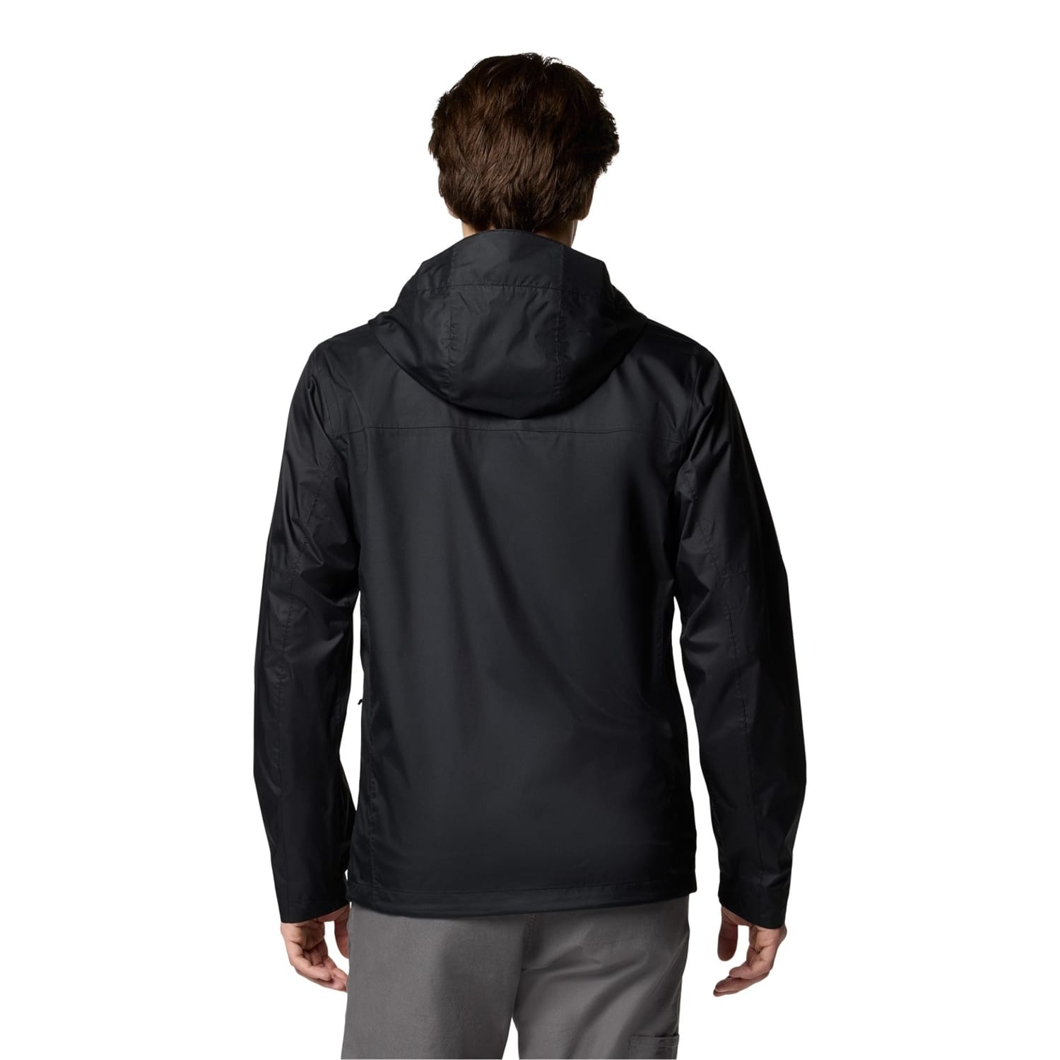 Columbia's rain jacket is designed for practicality and style. This short, solid jacket features a regular fit with a straight hem. It includes a zipper closure and is water-repellent, making it ideal for wet conditions. The jacket is embellished with zipped pockets and a logo, adding functional and aesthetic appeal. -