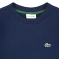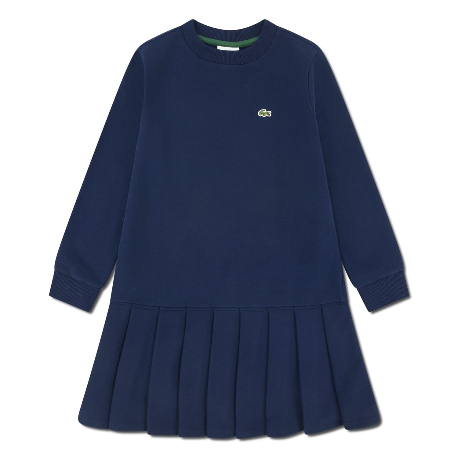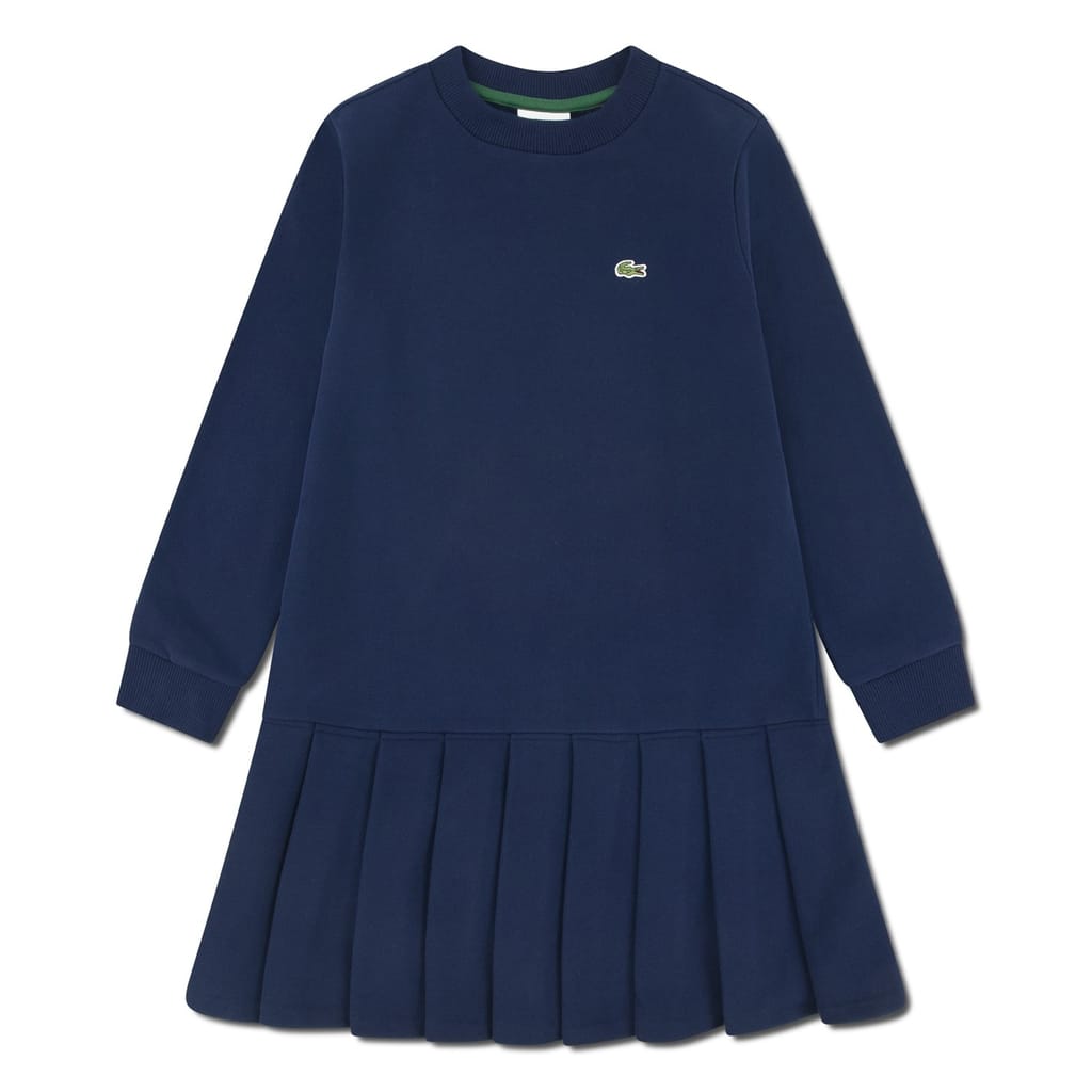 This Lacoste sweater dress is a stylish addition to your wardrobe. Crafted from knit material, it features a crew neck and a ribbed collar for a classic look. The knee-length design with long sleeves and a straight hem offers a regular fit. The solid pattern is complemented by a subtle crocodile print logo, adding a touch of brand identity. -