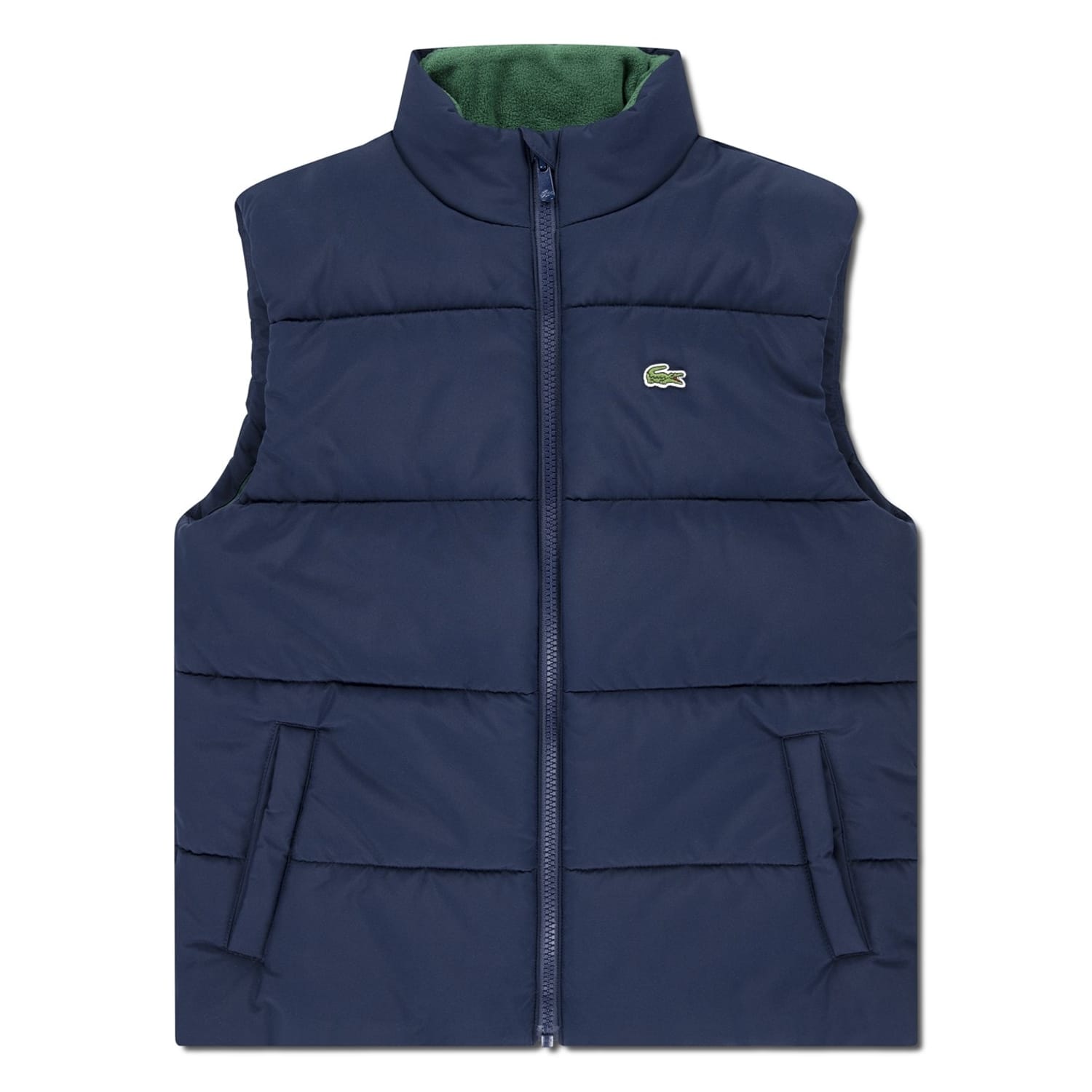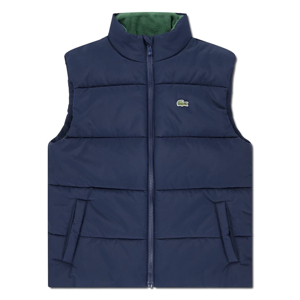 This Lacoste gilet features a sleek solid design, perfect for layering. The sleeveless style offers versatility, while the zipper closure ensures a secure fit. Ideal for those seeking a minimalist yet functional piece, this gilet embodies Lacoste's signature style and quality craftsmanship. -