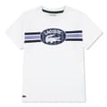 Lacoste's Kids' Regular Fit Stripe T-Shirt has classic style and youthful appeal. Clean stripes accentuate the comfortable regular fit shape, finished with the famous crocodile emblem. This tee is great for children who appreciate classic design.