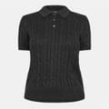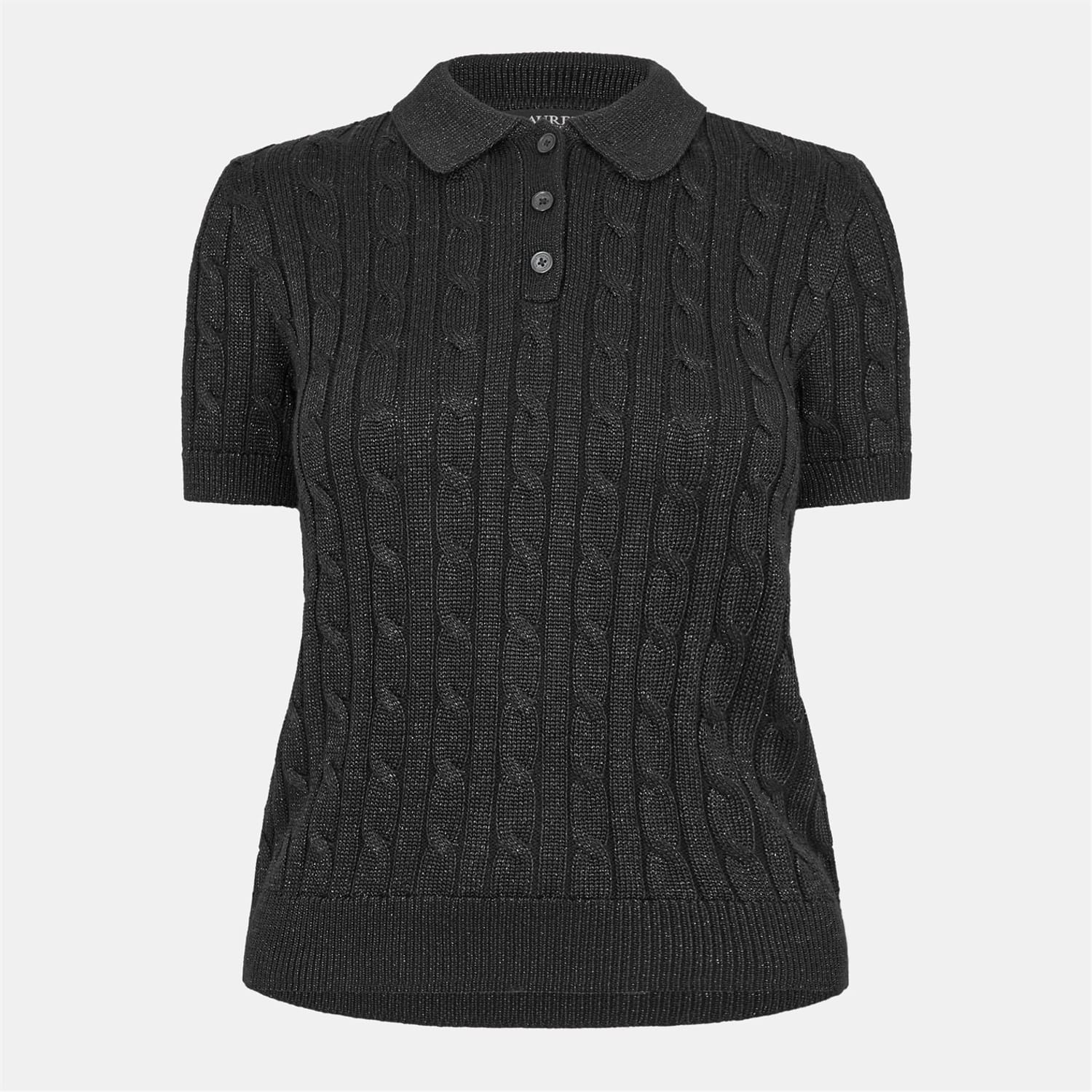 This Lauren by Ralph Lauren top features a classic polo collar and a button closure, offering a timeless look. The short sleeves and ribbed cuffs add a touch of sophistication, while the cable knit pattern enhances its texture. Crafted with a regular fit, this knit top is perfect for a polished yet comfortable style. -