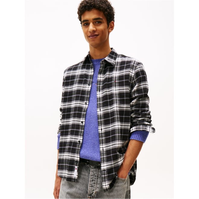 This Tommy Jeans top features a classic plaid pattern, offering a timeless appeal. Designed with long sleeves and a shirt collar, it provides a regular fit for comfortable wear. The button closure adds a touch of sophistication, making it a versatile addition to any wardrobe. -