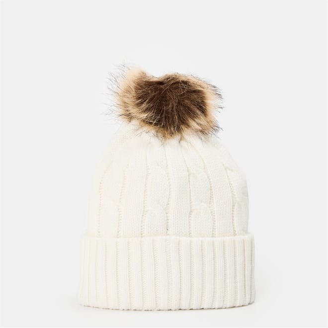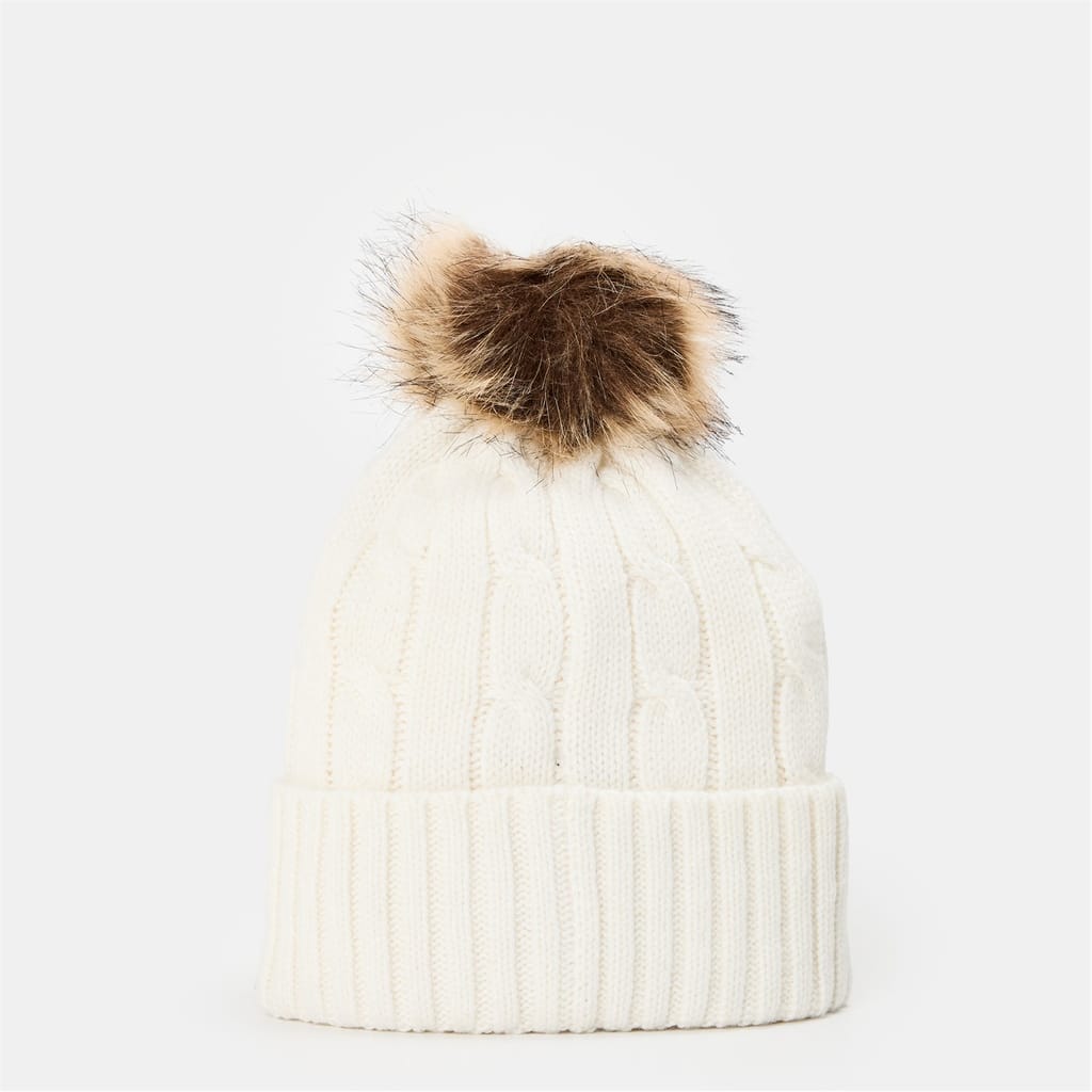 - Crafted with a cable knit design and a ribbed turn up hem providing comfort.