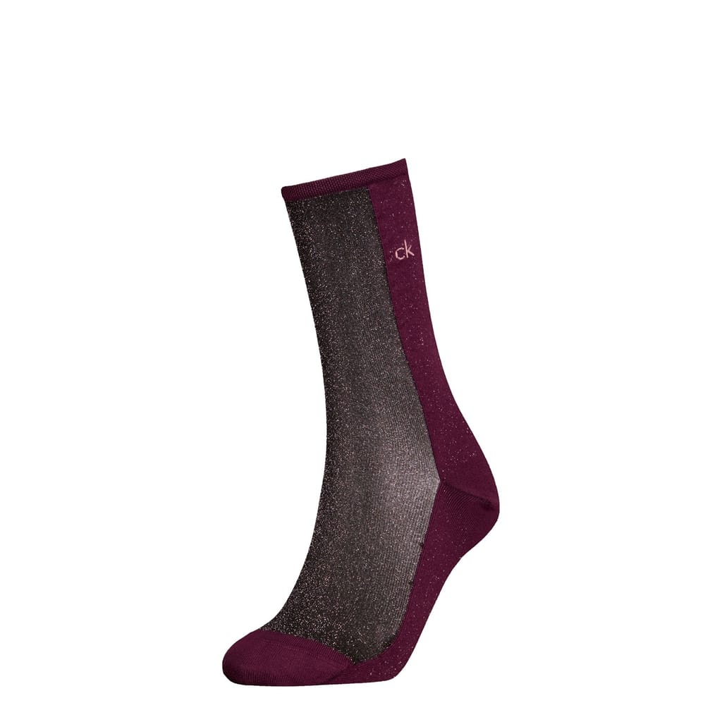Calvin Klein crew socks feature a striking metallic pattern, adding a touch of sophistication to your wardrobe. The design is enhanced with a subtle logo embellishment, ensuring a stylish yet understated look. Perfect for those seeking a blend of comfort and elegance in their everyday essentials. -