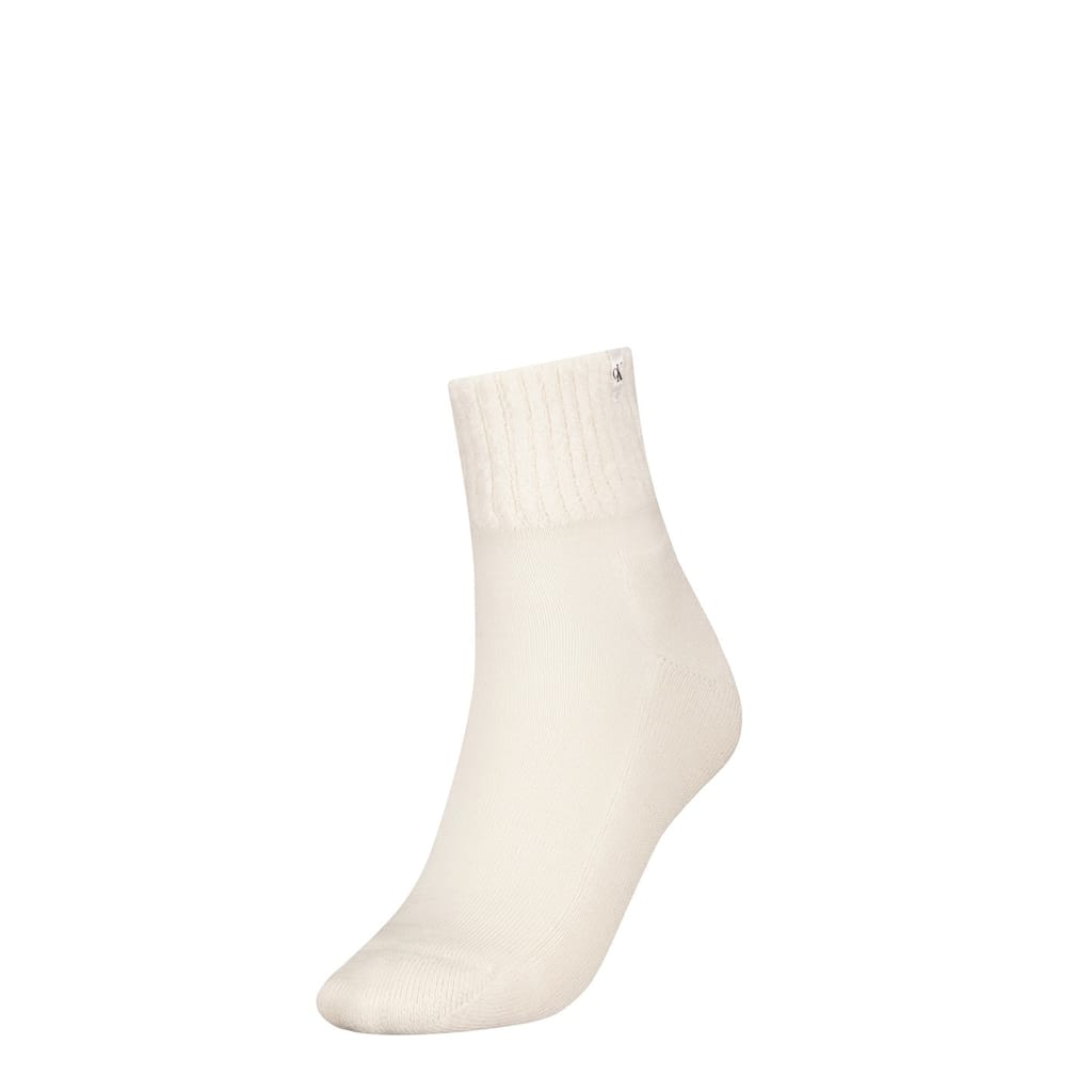 Discover the Calvin Klein crew socks, designed in a trainer sock style. These socks feature a subtle logo embellishment, offering a touch of brand recognition. Perfect for those seeking a blend of comfort and style in their everyday essentials. -