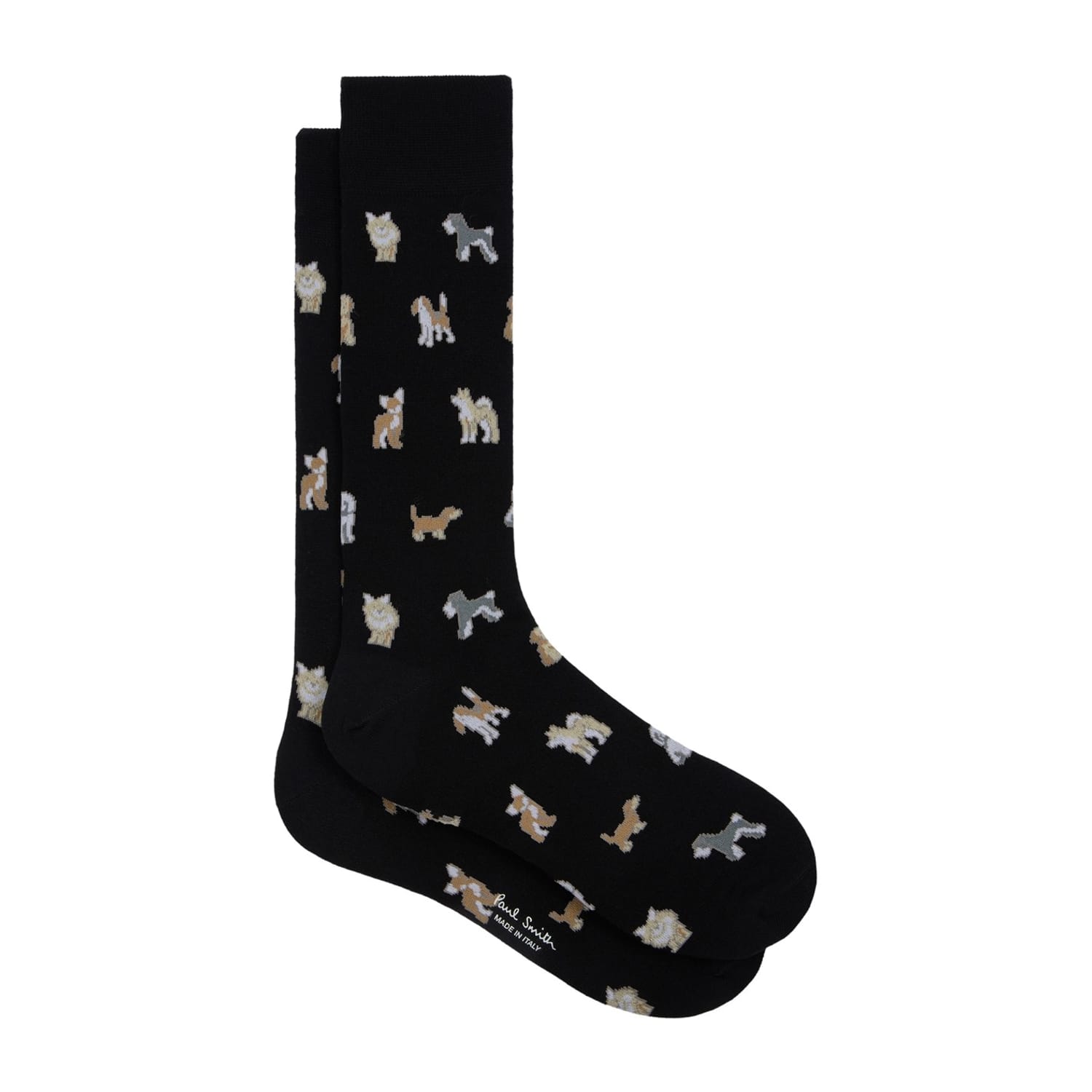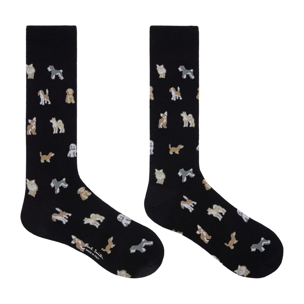 Paul Smith presents these crew socks, featuring an eye-catching animal pattern with a playful dog graphic. Perfect for adding a touch of whimsy to your sock collection, these socks combine style and comfort effortlessly. -