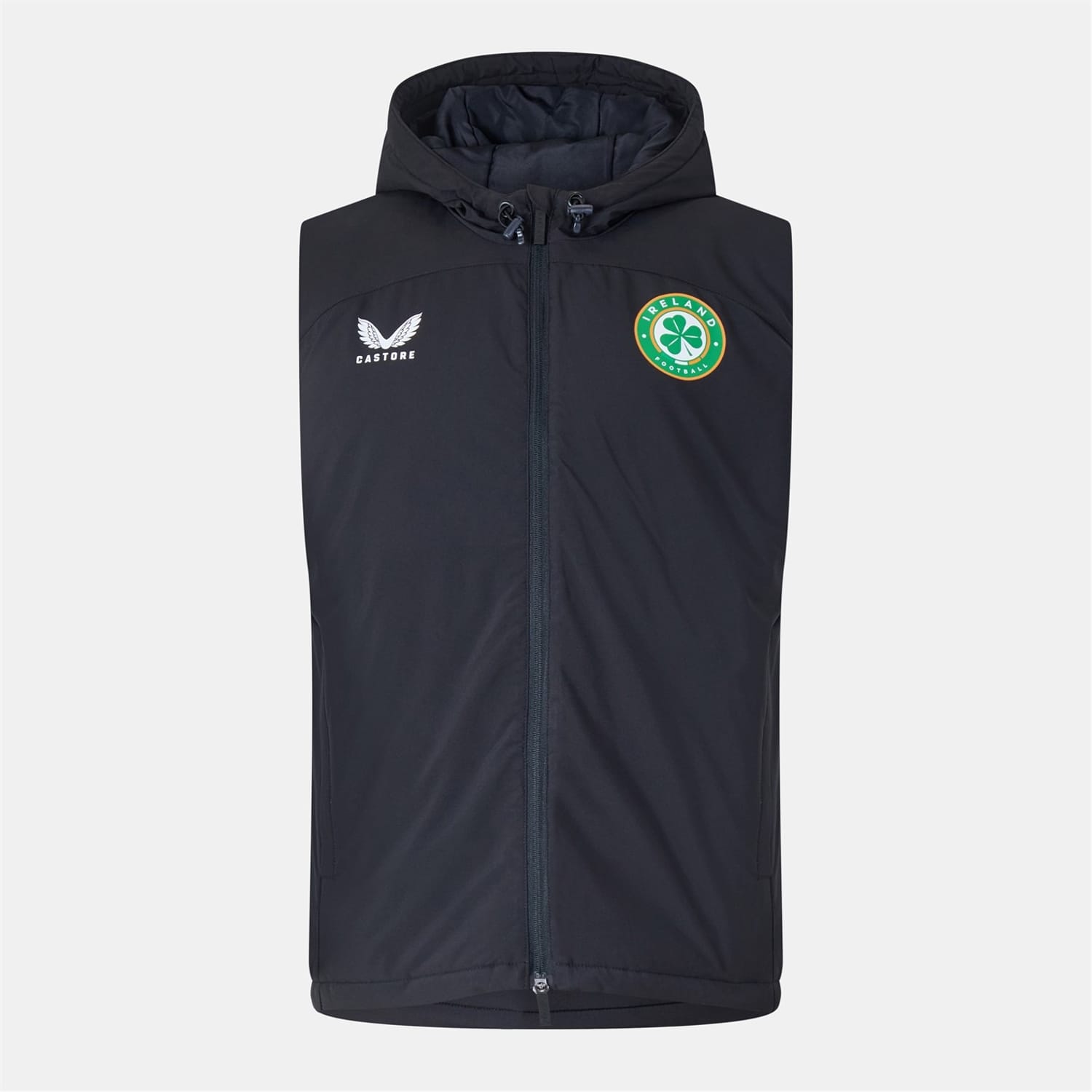 This Castore gilet is a lightweight, casual piece featuring a hooded design and a zipper closure. It offers a regular fit with a straight hem and showcases a solid pattern. The gilet is embellished with a logo, adding a touch of brand identity. -