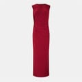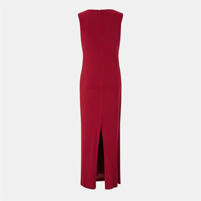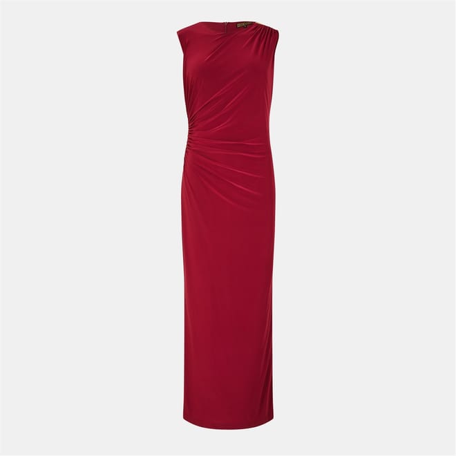 This Biba maxi dress features a sleek slip style with a boat neck and a straight hem. The solid pattern and ruched embellishments add a touch of elegance, while the slim fit ensures a flattering silhouette. A convenient zipper closure completes this sophisticated piece. -